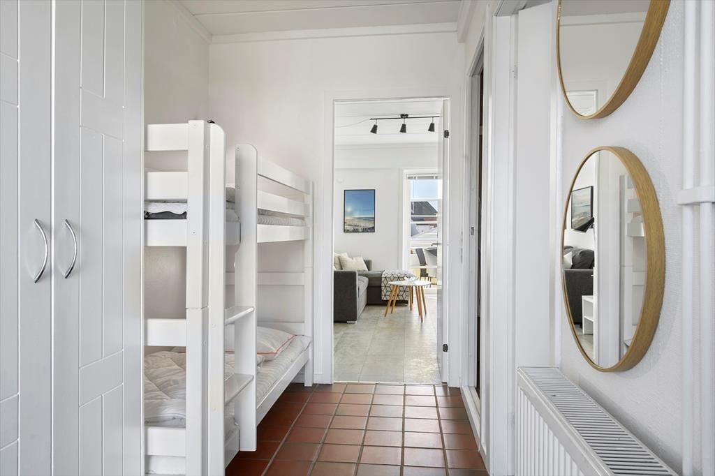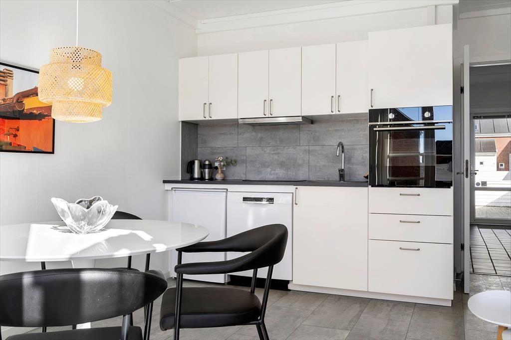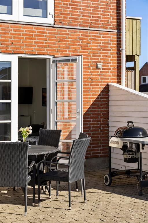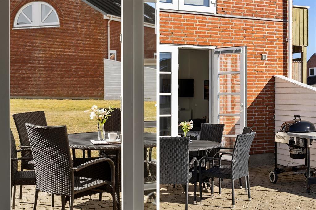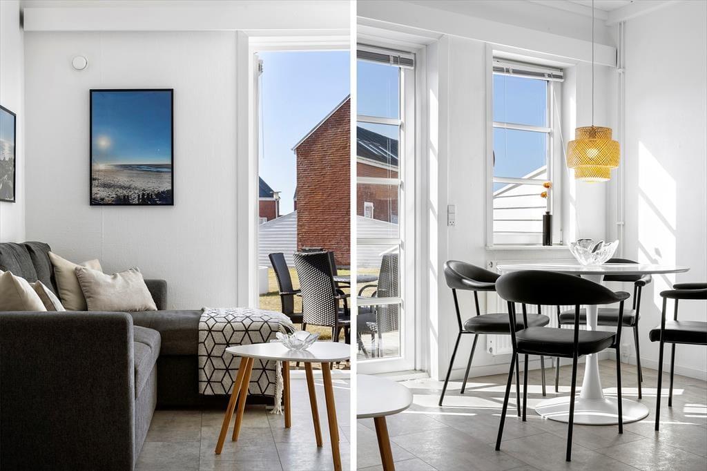 I begge ender af lejligheden har du adgang til en dejlig fliseterrasse, så du kan slå dig ned lige dér, hvor solforholdene er bedst. Den sydvendte terrasse bliver måske hurtigt din foretrukne opholdsplads – ikke kun på grund af orienteringen, men også fordi den ligger ud mod et grønt areal med en god legeplads. Her kan børnene smutte over for at lege og få nye feriekammerater, mens du sidder lige i nærheden og nyder terrasselivet.