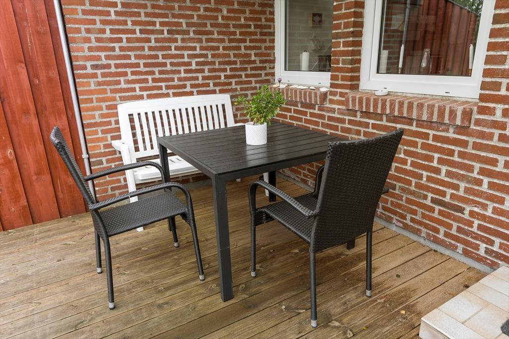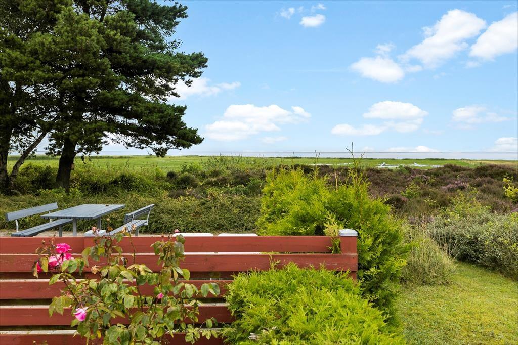 Når I træder fra stuen og ud i det fri, bliver udsigten til Vadehavet endnu bedre. På den fælles naturgrund kan I slå jer ned på en bænk, hvis I virkelig vil fordybe jer i havudsigten – og alternativt kan I nyde solen, roen og de flotte naturomgivelser fra jeres to private terrasser. Den ene terrasse er delvist overdækket, og der er liggestole, havemøbler og grill til rådighed.