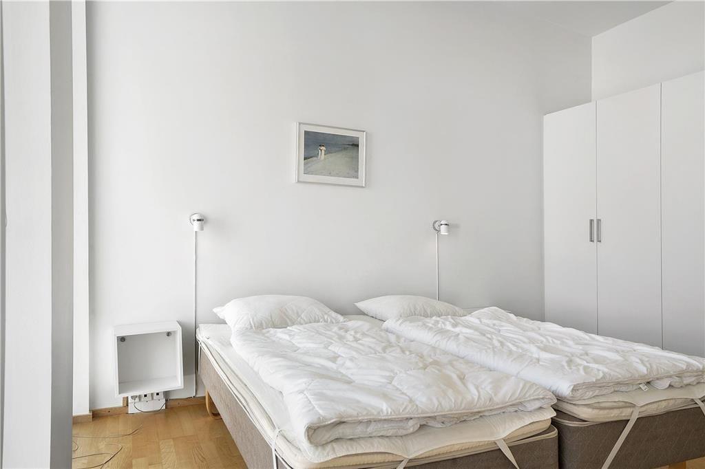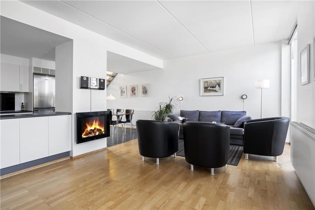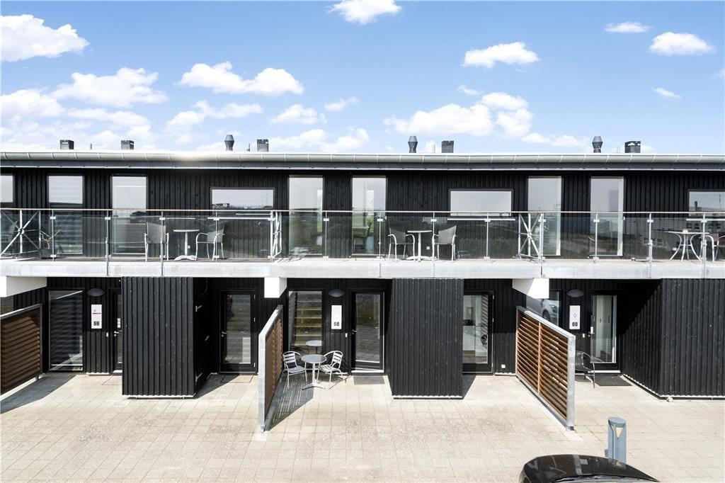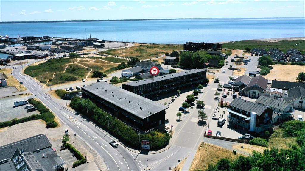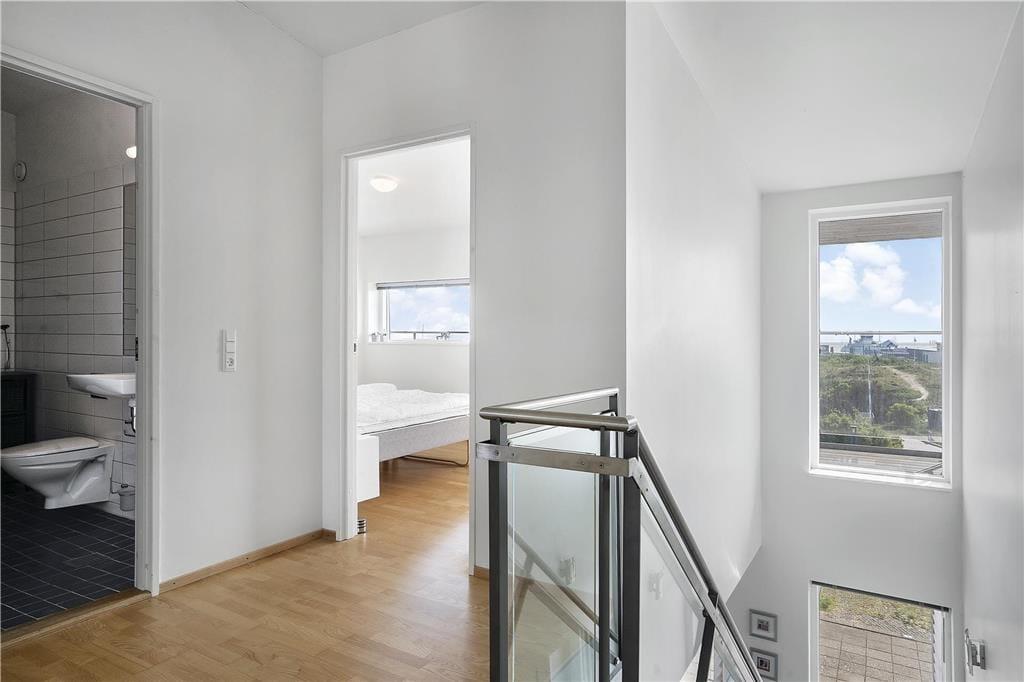 Ferieboligen, som er opført i to plan, ligger i et flot lejlighedskompleks fra 2009, der bærer navnet Skansen. Inden døre kan I brede jer på 124 m² fordelt på to etager. Planløsningen er gennemtænkt, så der er for eksempel badeværelse på begge etager, mens de tre soveværelser er samlet på første sal. I stueplan er størstedelen af kvadratmeterne dedikeret til det førnævnte opholdsrum, hvor køkkenet er integreret med stuen. Høje vinduespartier sørger for gennemstrømmende lysindfald fra øst og vest, og den gode loftshøjde bidrager til den behagelige atmosfære. Som en praktisk detalje er der også et bryggers med vaskefaciliteter i stueplan, så I kan friske garderoben op i løbet af ferien.