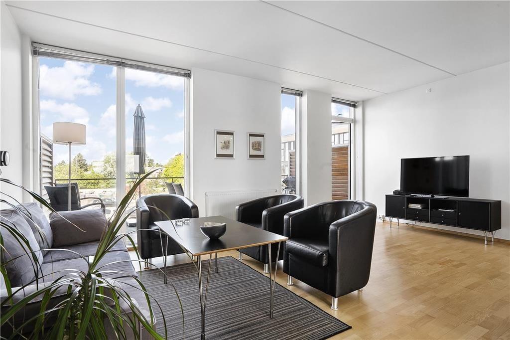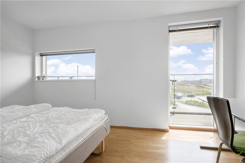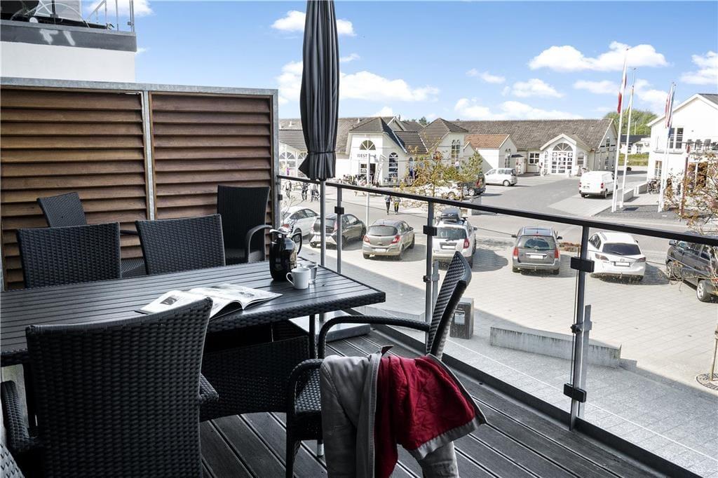 På begge etager er det muligt at træde direkte ud i det fri. I stueplan kan I slå jer ned på den østvendte terrasse eller den vestvendte altan, hvor I kan kigge ned på Havnebys hyggelige torv. Hvis I hellere vil nyde havneudsigten lidt fra oven, skal I vælge førstesalens østvendte altan.