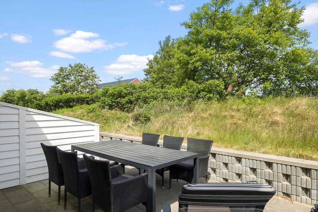 Når vejret lægger op til driverliv under åben himmel, er det skønt at have to terrasser at vælge imellem. Den ene ligger ved entréen, mens den anden er i forlængelse af stuen, så I har nem adgang til begge og kan sætte jer lige der, hvor solforholdene er bedst. Fra begge terrasser kan I også nemt smutte ud på de tilstødende græsarealer og videre ud på feriecentrets fællesområde, hvor I finder blandt andet flere store legepladser til de yngste familiemedlemmer.
