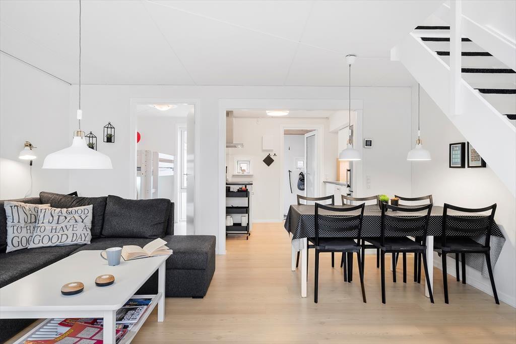 Efter en omfattende modernisering fremstår både stueetagen og førstesalen lyse og lækre i det 73 m² store hus. I stueplan ligger et veludstyret køkken i åben forbindelse med en dejlig stue, og her kan I se frem til at hygge jer med madlavning, kortspil ved spisebordet og filmaftner i sofaafdelingen. Et soveværelse med køjeseng ligger også i nederste niveau, og hvis I tager trappen op til førstesalen, finder I yderligere to soveværelser og et moderne badeværelse med bruseniche og vaskemaskine.