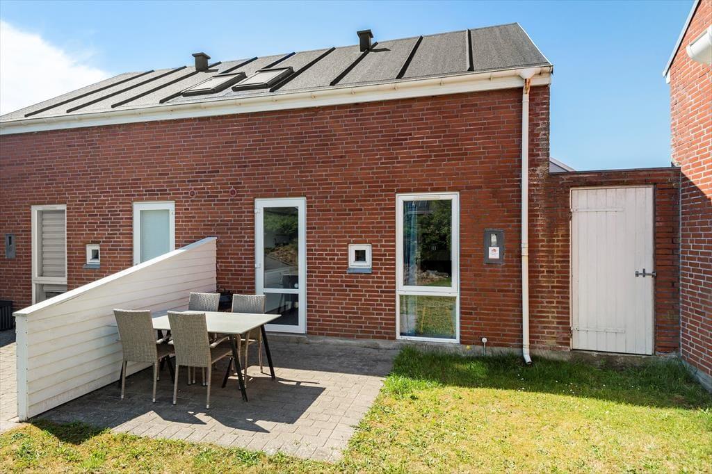 Både foran og bagved ferieboligen finder I en god terrasse, så I kan sætte jer lige der, hvor solforholdene er bedst. Den ene terrasse vender ud mod et lille grønt område, hvor børnene kan lege – og hvis der rigtigt skal brændes energi af, kan de yngste familiemedlemmer boltre sig på feriecentrets legepladser, der ligger lige i nærheden. De udendørs fællesarealer byder også på flere sportsbaner, en minigolfbane og sågar en udendørs pool.