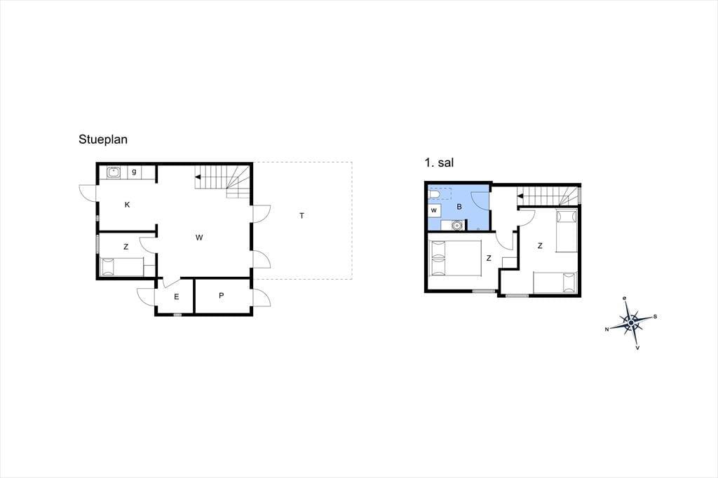 Lejligheden måler 73 m² fordelt på to plan og har en glimrende planløsning til fem personer. På førstesalen ligger to soveværelser og et badeværelse, og husets tredje sovegemak er placeret i stueetagen sammen med køkken og stue. Netop køkken og stue ligger i åben forbindelse, så her er der god plads til at være sammen og nyde hinandens selskab – også når I hver især hygger jer med madlavning, leg og krydsogtværser. Og skulle solskinsvejret give jer lyst til at flytte ferieaktiviteterne udenfor, giver glasdørene jer særdeles nem adgang til terrasserne.