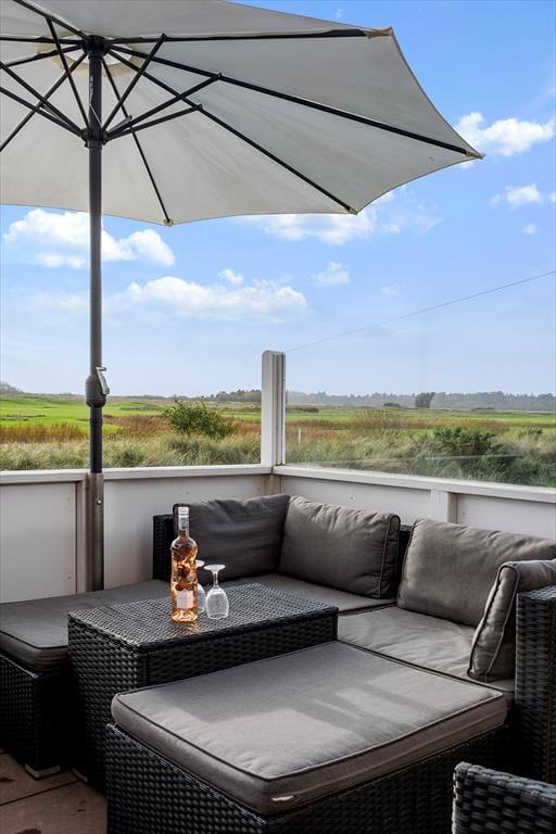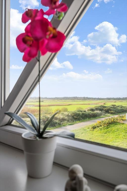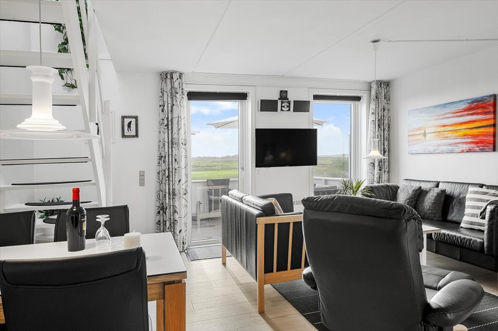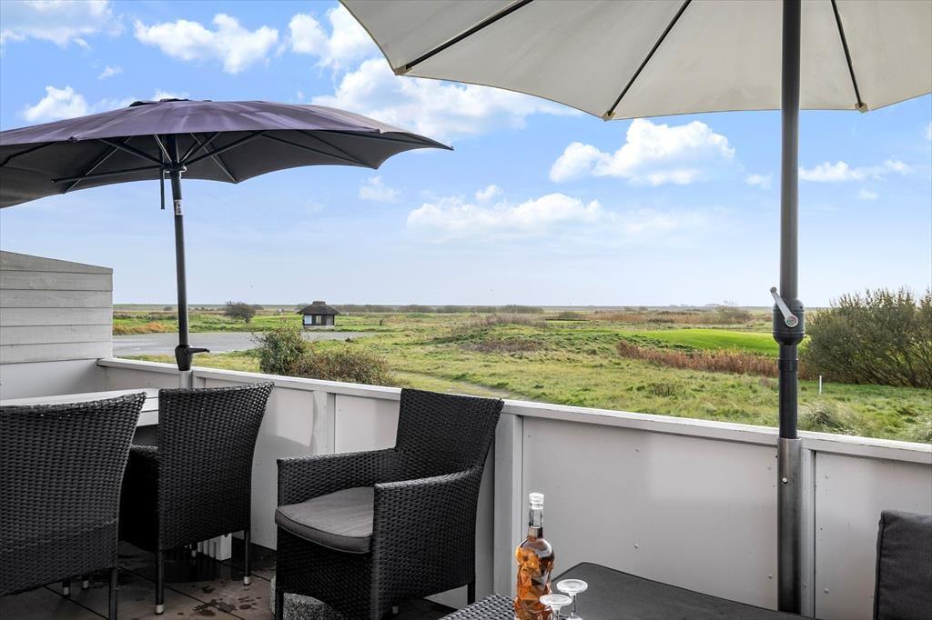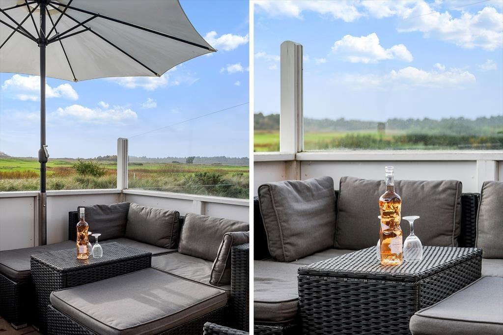 Denne skønne ferielejlighed ligger i den sydligste ende af Feriecenter Rim Rømø, og det giver jer den smukkeste udsigt ud over golfbanen og det flade landskab, der breder sig ud mod Vadehavet. Med andre ord får I en særligt skøn ramme om afslapningsstunderne inden døre og på terrasserne – og når der skal være mere gang i den, har I nem adgang til feriecentrets mange sjove og sporty fællesfaciliteter.