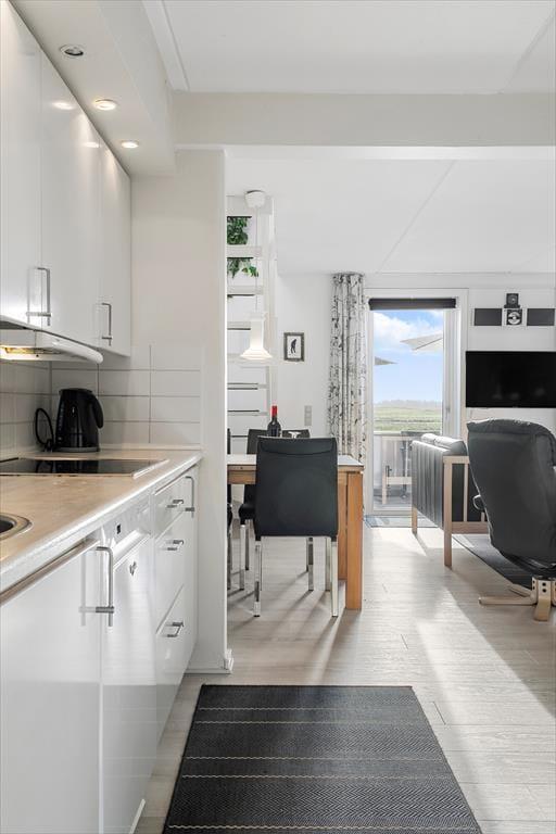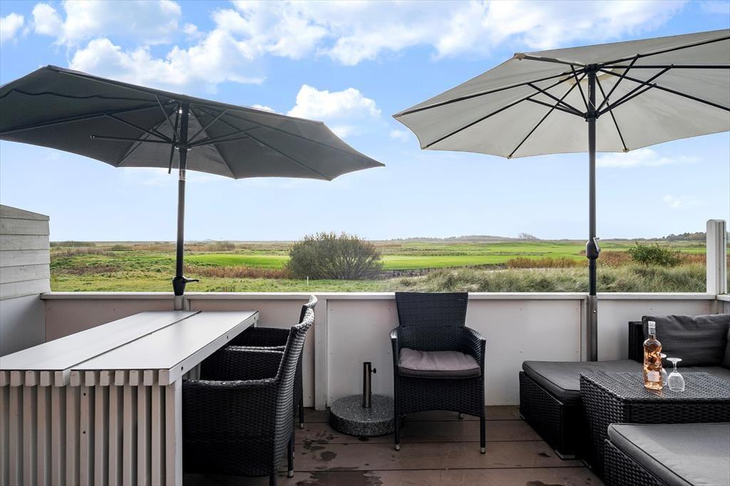 Terrassen er godt afskærmet med hegn, men selvfølgelig ikke mere end, at I kan stornyde udsigten til det smukke landskab med golfbane og åbne vidder. Der er havemøbler af god kvalitet, og parasollerne står klar til at give lidt skygge, hvis I ikke bare vil sidde i solen. På den anden side af ejendommen venter også et lille terrasseområde, og så er der bare få skridt hen til den nærmeste legeplads i feriecentret.