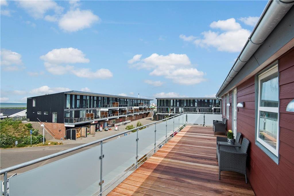 Den sydvendte altan er den helt rette opholdsplads, når I vil nyde solskinsvejret og de sommerlige temperaturer, mens den nordvendte svalegang er mere skyggefuld. Fra begge udearealer kan I nyde udsigten til vandet, og samtidig har I et godt overblik over Havnebys centrale torv med butikker og afslappet feriestemning. Endelig skal det nævnes, at der hører en elmarkise med til den sydvendte altan, og en afmærket parkeringsplads med til lejligheden.