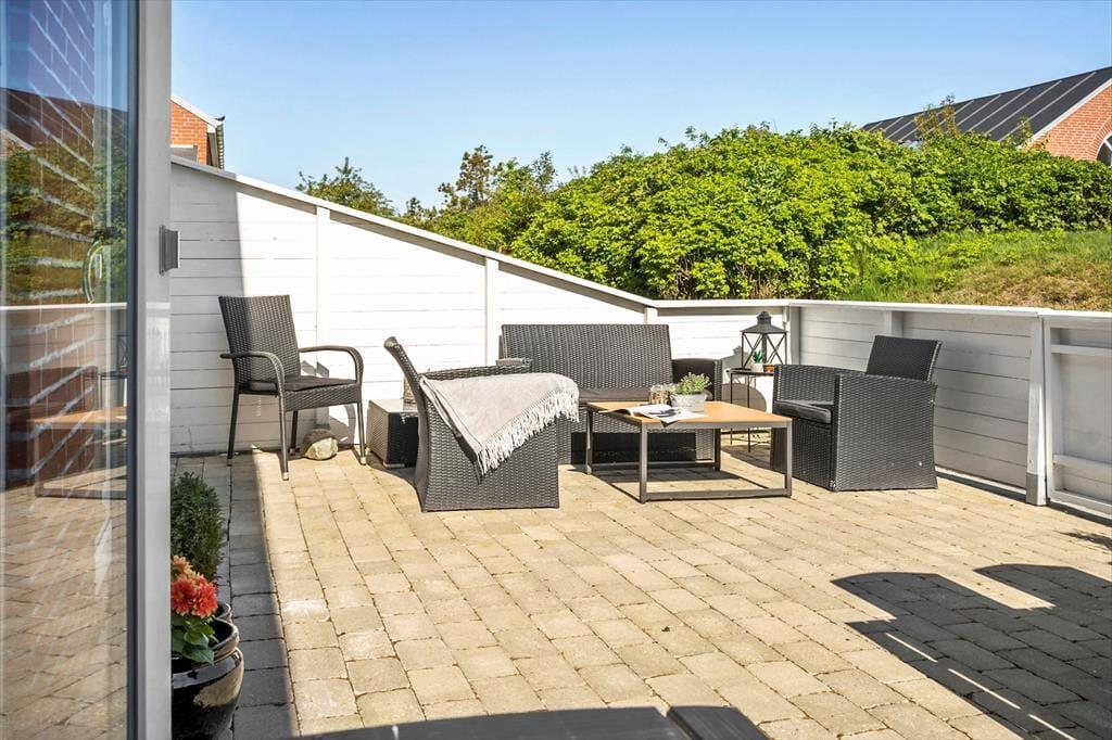 Fjern fra hverdagens stress kan du nyde de to smukke terrasser, der indbyder til solbadning, afslapning og udeliv. Her kan du flytte med solen, alt efter hvilken terrasse, du foretrækker, og nyde morgensol eller aftensstemning med en kop te. De store terrasser er ideelle til udendørs spisning, afslapning i havemøbler, eller blot til at lytte til fuglenes sang, mens du nyder roen. Her kan du kan skabe særlige øjeblikke sammen med familie og venner i fredelige omgivelser, hvor du kan sætte dig med en god bog eller grille en lækker middag. Du får den perfekte ramme for at slappe af, genoplade energien og nyde den friske, rene luft på Rømø. På fællesarealerne er der en legeplads til børn, så det er nemt at finde nye ferievenner, som man måske kan holde kontakt med og møde igen når den næste ferie skal holdes på Rømø.
