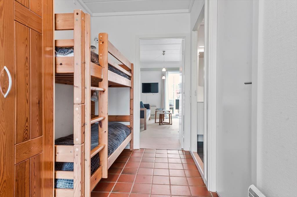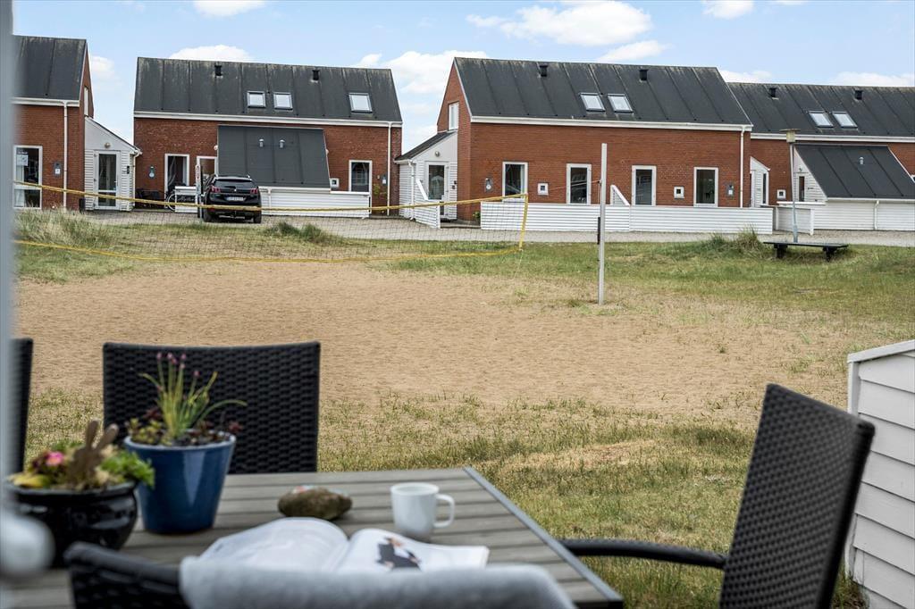 Fra terrassen har du direkte udsigt til feriecentrets legeplads, så børnene kan boltre sig frit, mens du nyder en stille stund med en kop kaffe og et godt blad. Udenfor venter desuden et væld af aktiviteter, for som gæst i Feriecenter Rim har du adgang til både indendørs og udendørs swimmingpool, fitnessrum og sauna – perfekte rammer til både aktive dage og afslappende aftener. Når I trænger til frisk havluft, kan I tage på cykeltur gennem de åbne landskaber eller køre en tur til Sønderstrand, hvor en af Europas bredeste sandstrande indbyder til badning, sandslotte og spændende vindsportsaktiviteter som blokart, kitebuggy og strandsejlads.