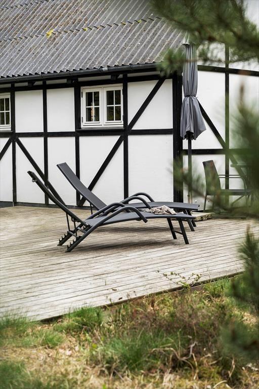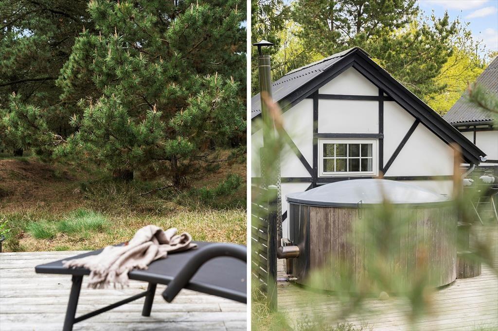 Udenfor byder den ugenerede terrasse med mange hyggelige kroge på en perfekt ramme til afslapning og fordybelse i naturens lyde og dufte. Her kan du nyde de lange, danske sommeraftener, mens du sidder i solen og nyder roen uden forstyrrelser. Træerne og det grønne sceneri skaber en privat oase, hvor du kan høre fuglekvidder og mærke den friske luft på din hud. Fyr op under vildmarksbadet og nyd et dejligt varmt bad under stjernehimlen om aftenen eller inviter hele familien til storslået grillhygge mens I nyder den fredelige stilhed. Hvad enten du vil læse en god bog eller blot lade sjælen slappe af mens du soler dig i en af liggestolene, så er dette sted et perfekt udgangspunkt for din ferie på Rømø.