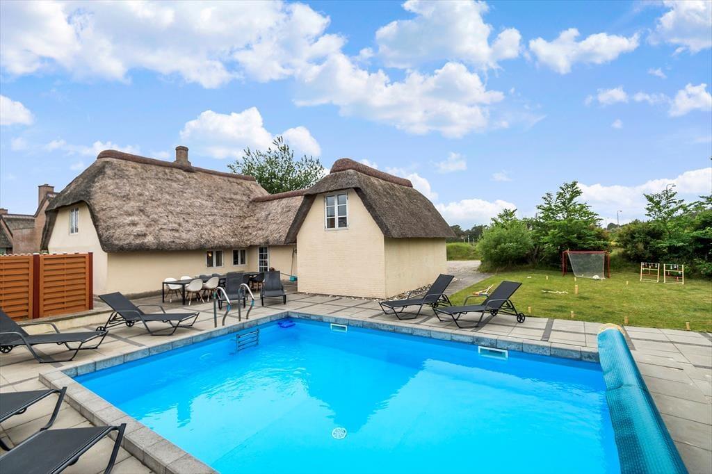 I får de skønneste rammer om ferieturen i dette flot renoverede Rømø-hus med plads til 14 personer. De varme sommerdage kan tilbringes omkring den dejlige pool, og beliggenheden giver jer både golfbane, indkøb og Rømøs smukke natur lige for fødderne.