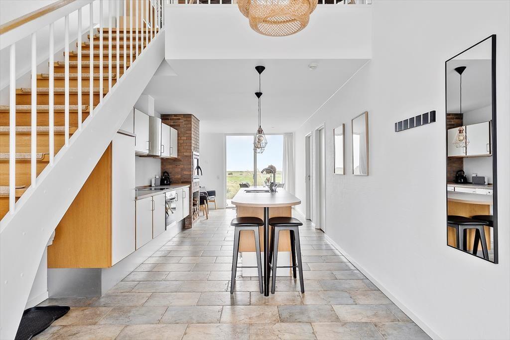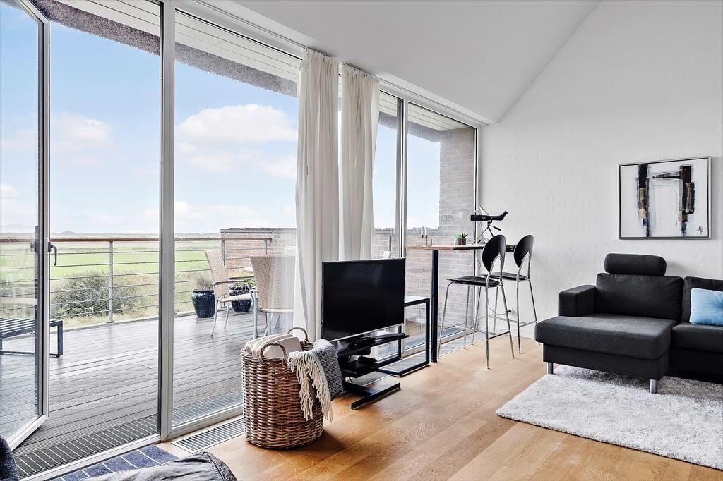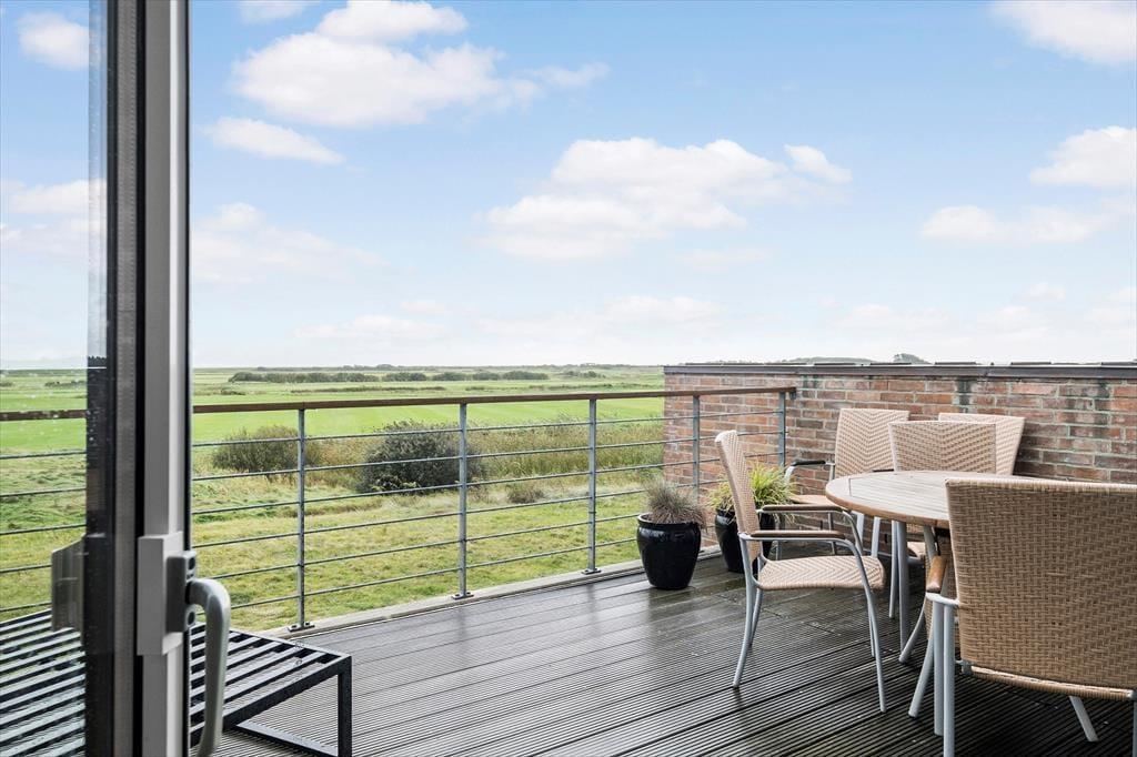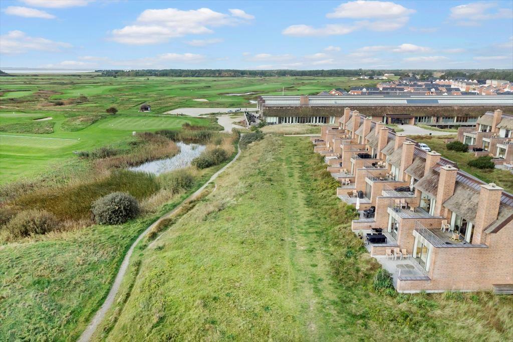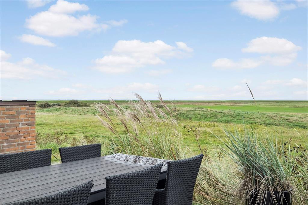 På husets nordside er der god plads til at parkere bilen, men det er på sydsiden, at udelivet for alvor kommer til at foregå. Her er der nemlig opholdsarealer i to plan i form af en stor terrasse og en ditto altan, og begge er solrige og byder på det flotteste vue over golfbanen og den flade strandeng. På begge niveauer er der havemøbler af god kvalitet, så I får en både flot og komfortabel ramme, når der skal slappes af under åben himmel.