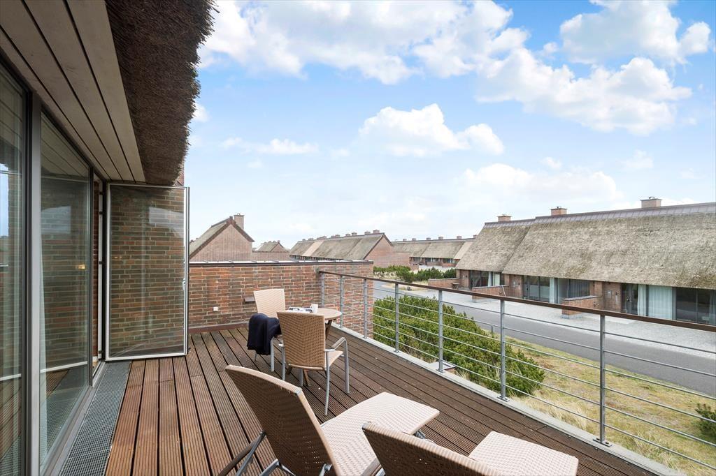 Når det gode vejr lokker jer udenfor, har I flere opholdspladser at vælge imellem. Fra førstesalens stue kan I træde lige ud på en stor altan, hvor I læner jer tilbage i liggestolene, kigger op på den store himmel og mærker ferieroen sænke sig. Vil I hellere ned i jordhøjde, har I en nordvendt og en sydvendt terrasse til rådighed.