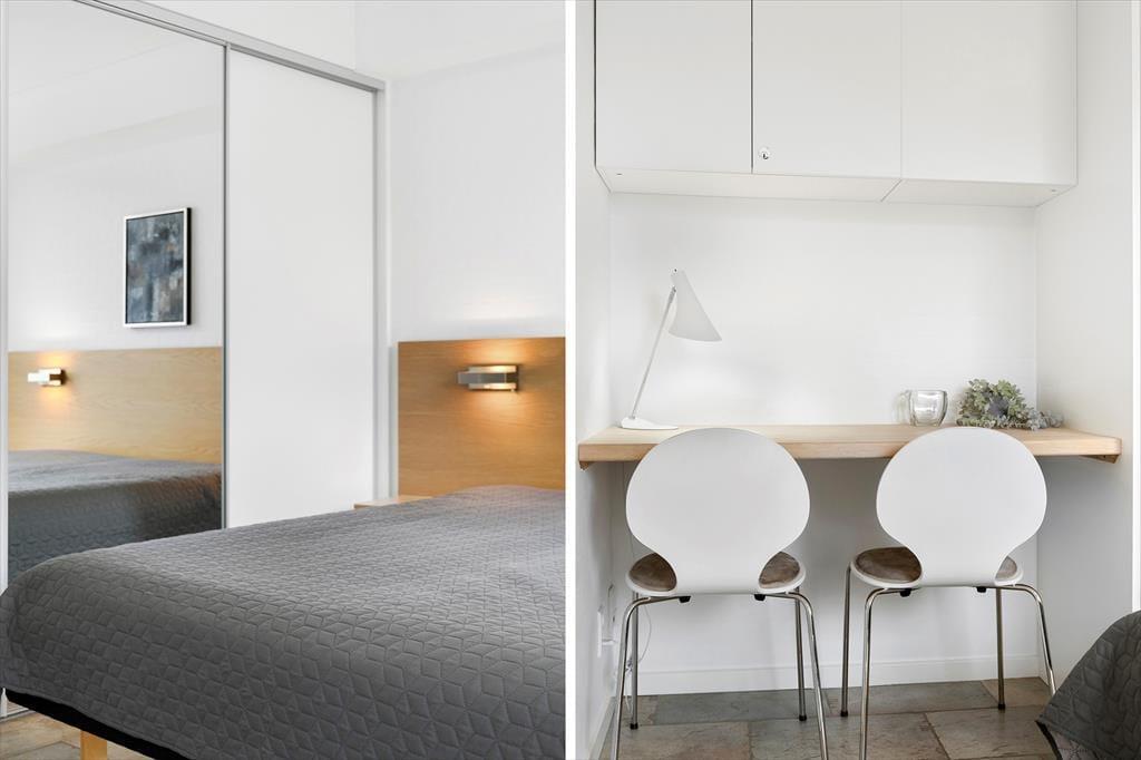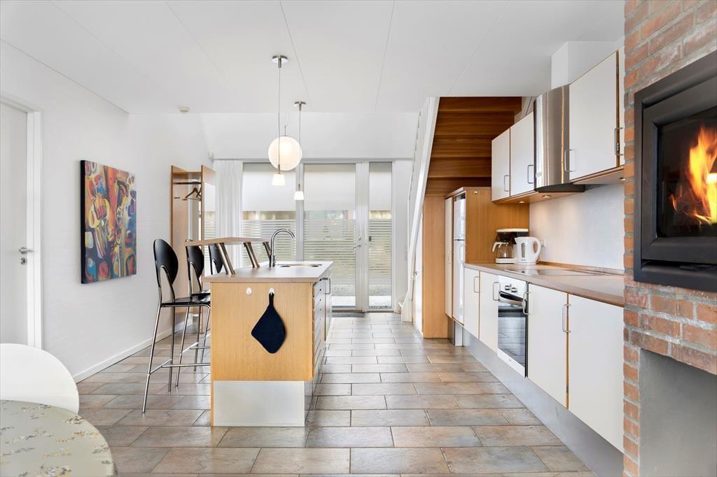 Træd indenfor i dette hyggelige rækkehus, hvor lys og luftige rum skaber en behagelig atmosfære. Store vinduer åbner op for en betagende panoramaudsigt over golfbanens grønne fairways – perfekt for golfentusiaster, der drømmer om at tage en runde lige uden for døren. Indretningen emmer af sommerhuscharme, med en velvalgt farvepalette og behagelige møbler, som indbyder til afslapning. Forestil dig, at sidde med den fine udsigt, mens den indbyggende kamin skaber en varm og hyggelig stemning. Det åbne køkken gør det nemt at forberede lækre måltider med friske, lokale råvarer. Her er rammerne sat for skønne stunder med familie og venner, hvor snakken og latteren kan flyde frit.