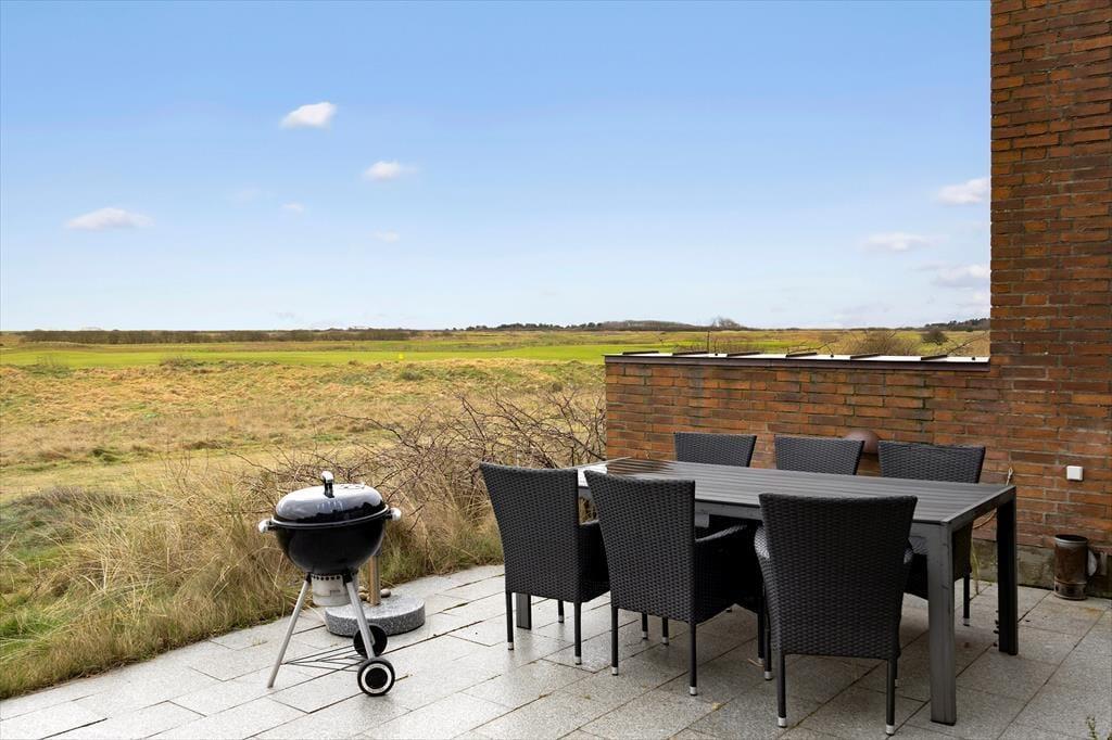 Det skønne udendørsområde byder på en fantastisk udsigt over golfbanen og et roligt og afslappende miljø. Terrasseområdet er ideelt til at nyde en kop morgenkaffe, mens du beundrer panoramaudsigten. Det er det perfekte sted at slappe af og opleve den dejlige atmosfære.
