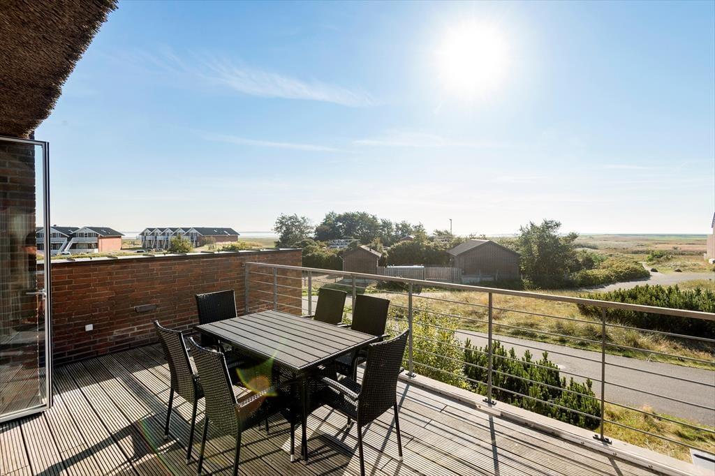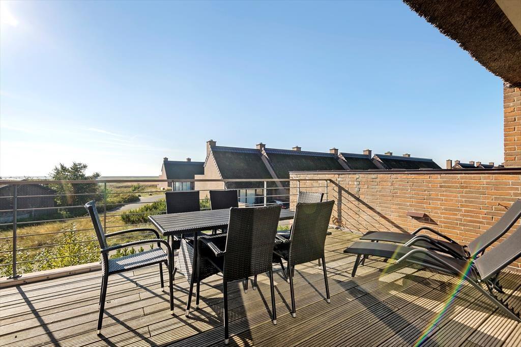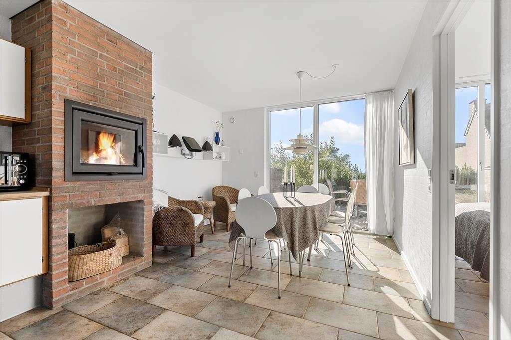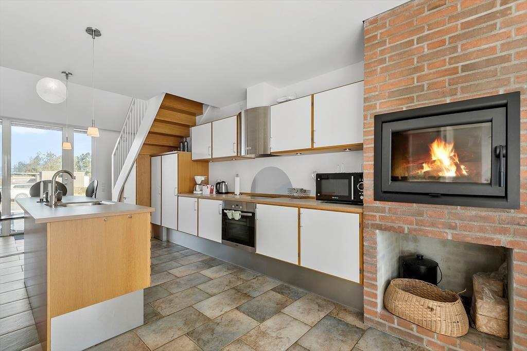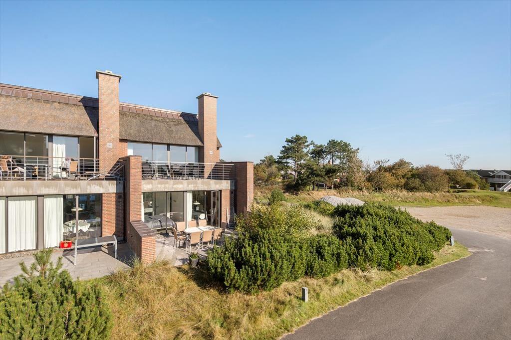 Huset er nærmere bestemt et arkitekttegnet rækkehus med stråtag og rødbrun teglstensfacade – og det er endda et enderækkehus, så der er ingen naboer til den ene side. Som det kan forventes af et kvalitetsbyggeri fra 2007, er ferieboligen indrettet på lækker vis med et lækkert badeværelse, et veludstyret køkken og store vinduespartier, der inviterer sollyset og udsigten indenfor. Som en komfortabel, men knap så synlig detalje er der gulvvarme i hele stueplan, som består af to soveværelser, det førnævnte badeværelse og et opholdsrum med stue og integreret køkken. Hvis I for alvor vil nyde vuet, skal I gå op til førstesalens udsigtsstue, hvorfra I kan skue ud over Rømø Golfklubs flotte linksbane og Vadehavet på den anden side af Havnebydiget.