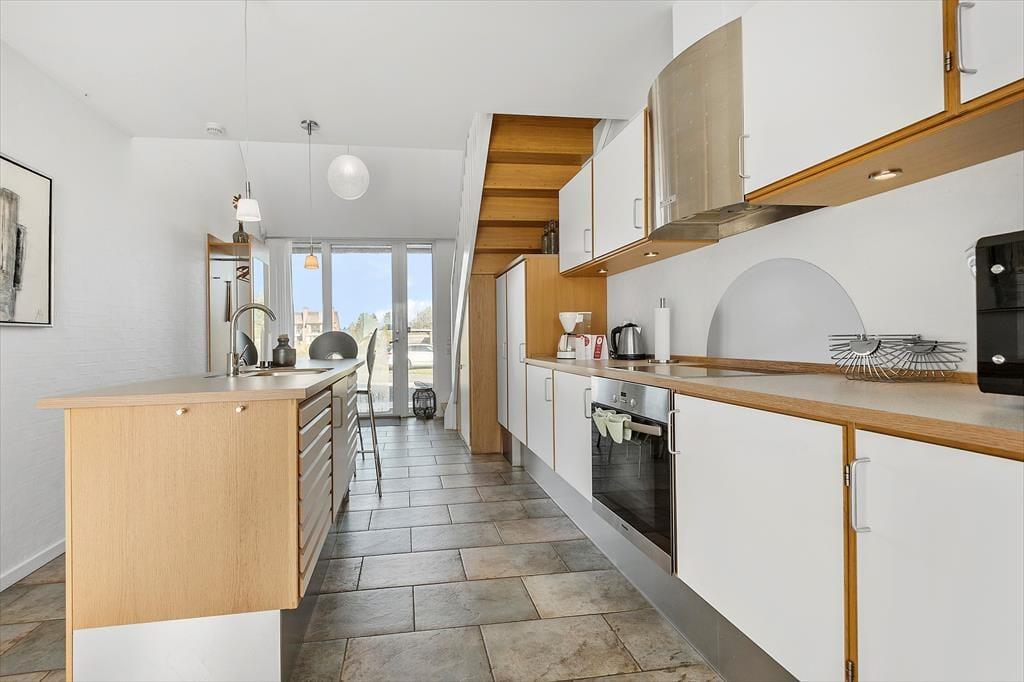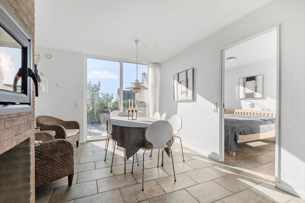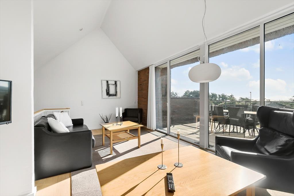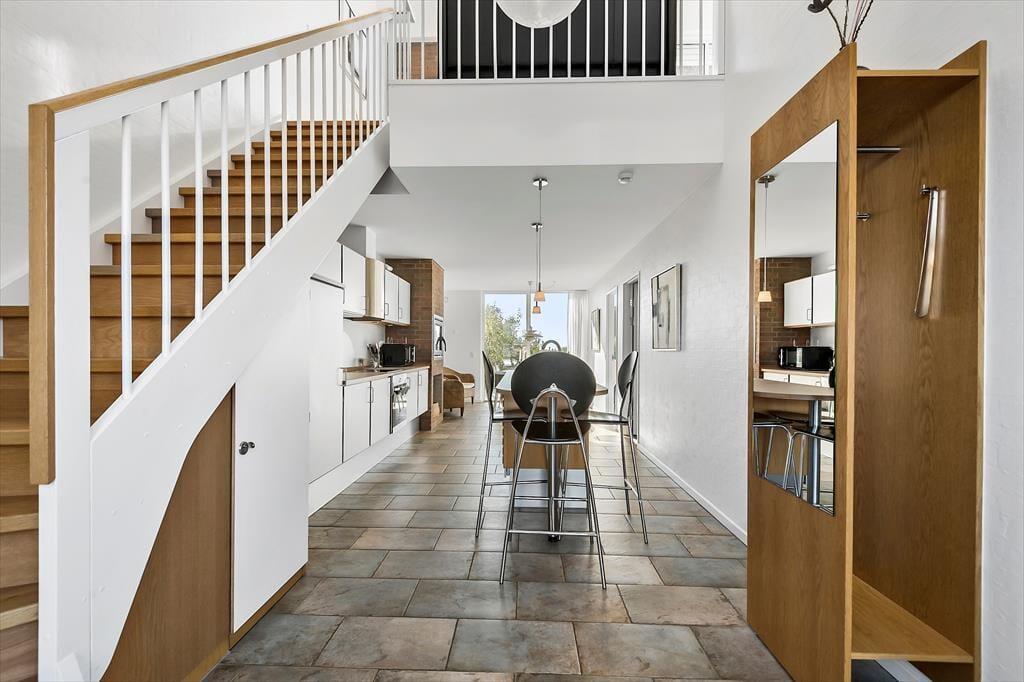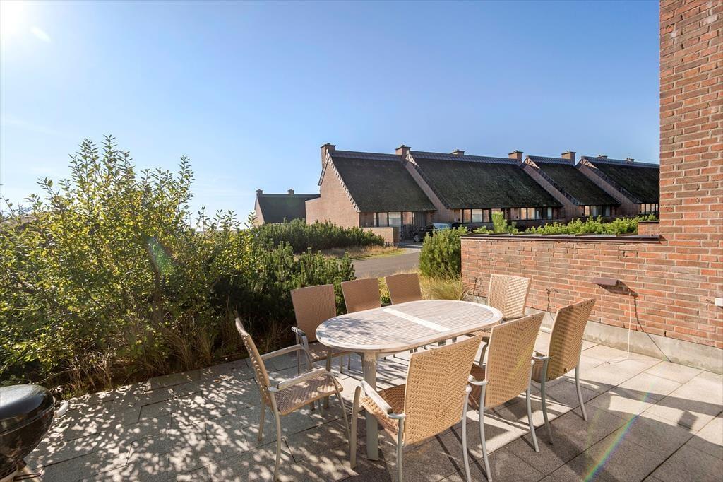 Huset er nærmere bestemt et arkitekttegnet rækkehus med stråtag og rødbrun teglstensfacade – og det er endda et enderækkehus, så der er ingen naboer til den ene side. Som det kan forventes af et kvalitetsbyggeri fra 2007, er ferieboligen indrettet på lækker vis med et lækkert badeværelse, et veludstyret køkken og store vinduespartier, der inviterer sollyset og udsigten indenfor. Som en komfortabel, men knap så synlig detalje er der gulvvarme i hele stueplan, som består af to soveværelser, det førnævnte badeværelse og et opholdsrum med stue og integreret køkken. Hvis I for alvor vil nyde vuet, skal I gå op til førstesalens udsigtsstue, hvorfra I kan skue ud over Rømø Golfklubs flotte linksbane og Vadehavet på den anden side af Havnebydiget.