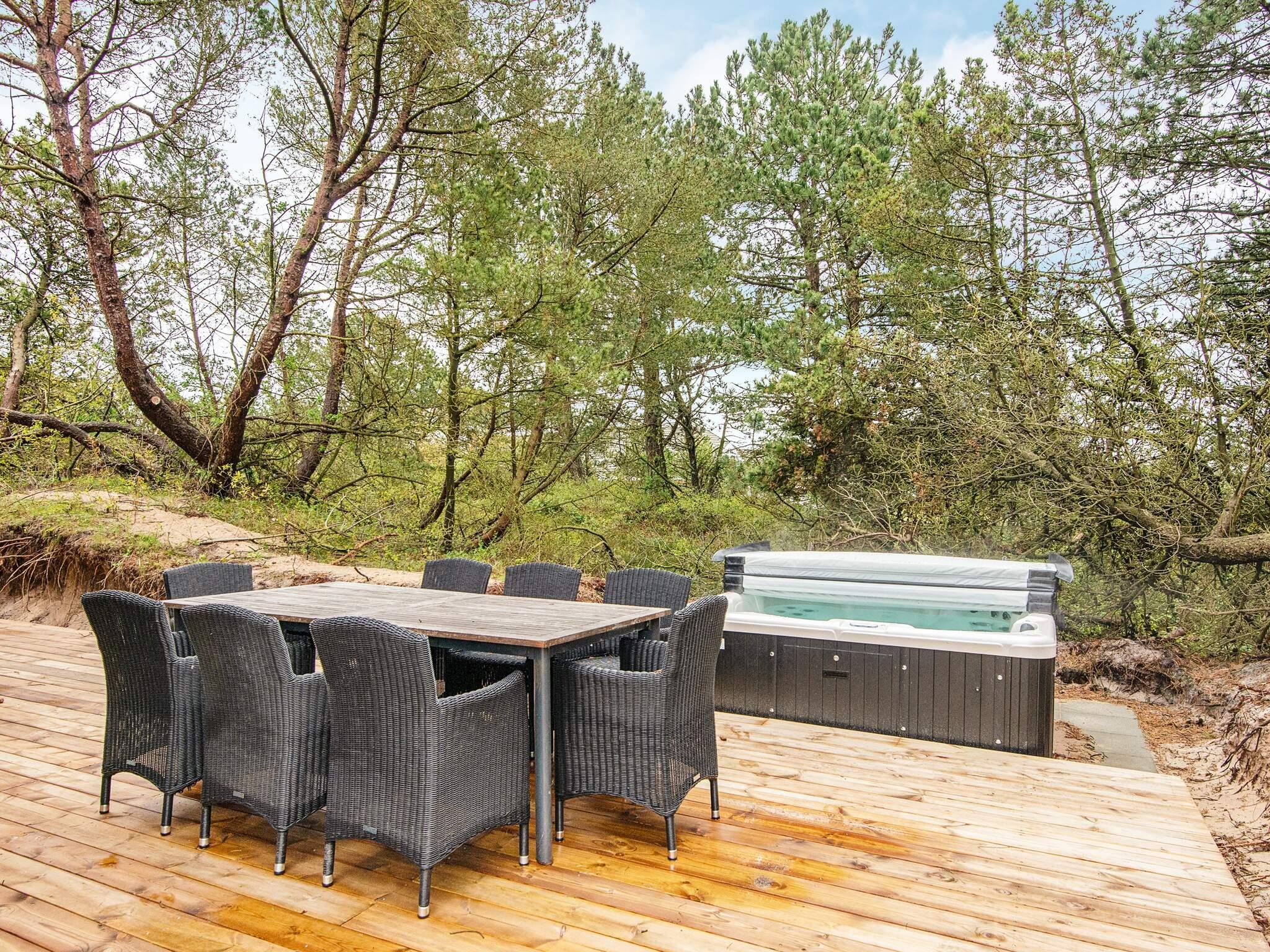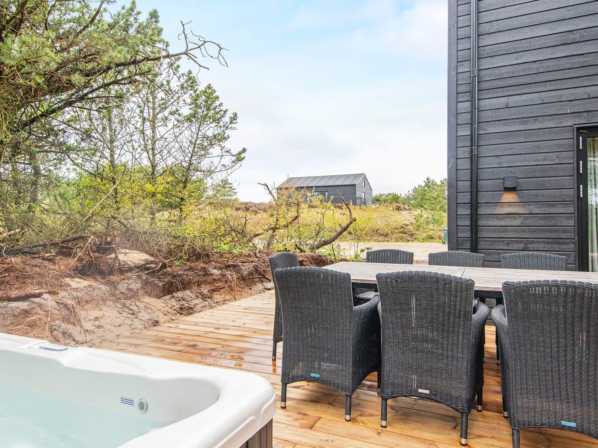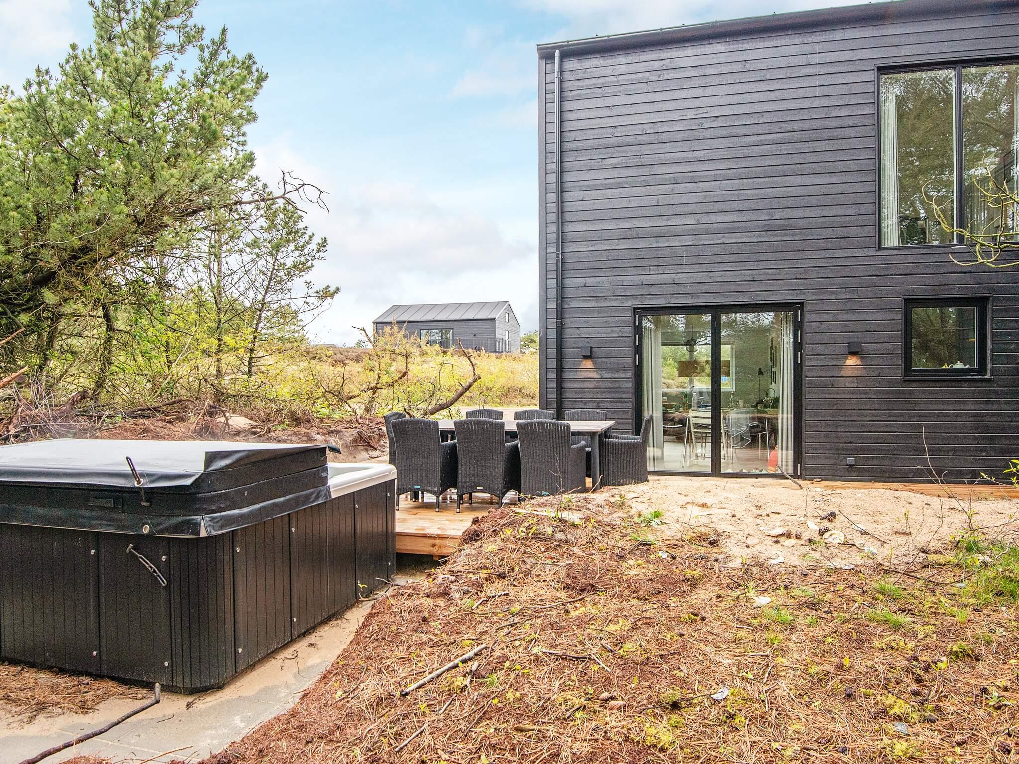 Dette arkitekttegnede sommerhus med spabad og sauna fra 2022 ligger på en af ??Rømøs mest attraktive beliggenheder, i gåafstand fra Havneby midtby og tæt på strand og natur. Feriehuset er bygget med materialer af høj kvalitet og indrettet med moderne og komfortable møbler. Der er lyst køkken/alrum med spiseplads i forbindelse med stuen. Herfra er der udgang til en dejlig ugeneret træterrasse med grill og havemøbler, hvor I også finder husets store spabad, som er klar til brug hele året rundt. Der er i alt fire soveværelser og to badeværelser. Badeværelset i stueetagen har adgang til sauna. På 1. sal er der opholdsstue med tv og spillekonsol til børn og sjæle, hvorfra der er udgang til dejlig altan med udsigt over det smukke plantageområde med lyng- og lavklædte klitter. I stuen er der mulighed for at sove op til to personer på sovesofaen. Der er stikkontakt til opladning af hybrid- eller elbiler ved sommerhuset. Der er to populære strande på Rømø. Sønderstrand, der ligger ca. 1500 m fra sommerhuset, har gode parkeringsmuligheder og er Nordeuropas bredeste sandstrand med rig mulighed for at prøve gokarts og andre former for vind- og vandsport, samt Lakolk Strand, som har et livreddertårn, der er bemandet i dagtimerne om sommeren.