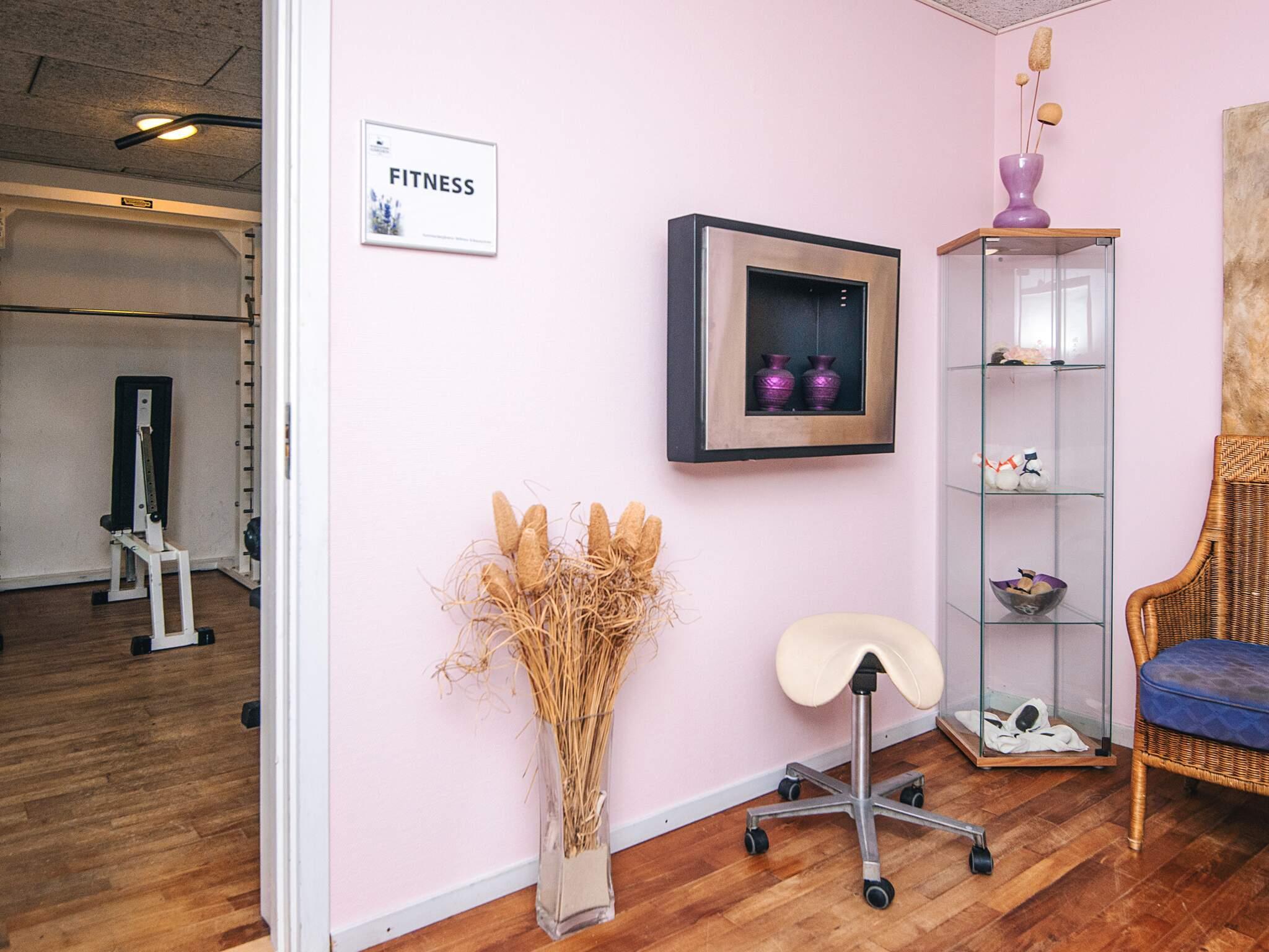 For dem, der ønsker at være aktive under opholdet, er der et fitnesscenter med forskellige træningsmaskiner og udstyr. I fitnessområdet er der også et tehjørne og en balkon, der giver et hyggeligt sted at slappe af og nyde omgivelserne efter en god træning.