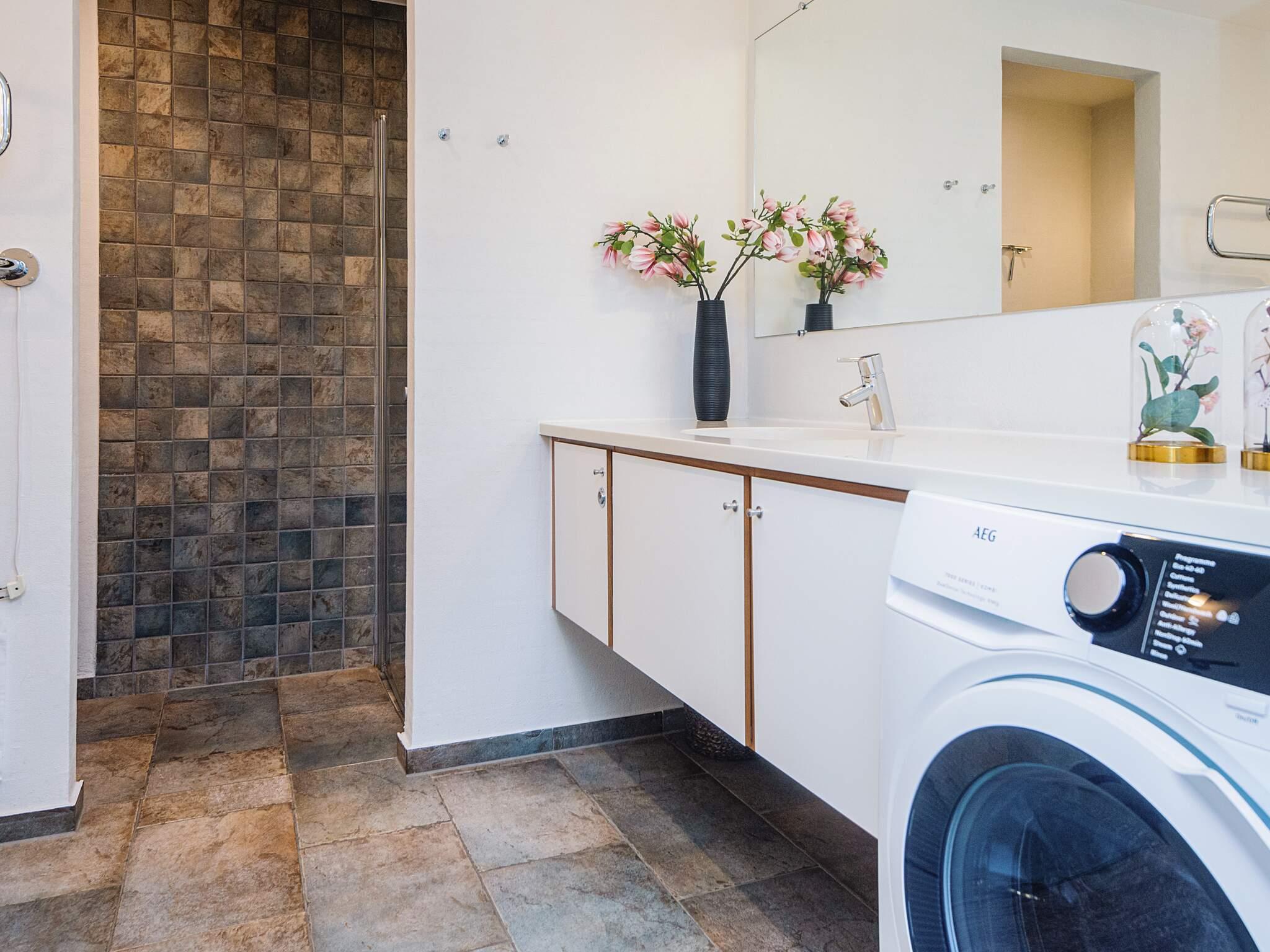 Bad/wc: Vaskemask., tørretumbler, wc, håndvask, bruser