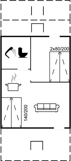 Der er i alt 1 soveværelse. Sovepladserne fordeler sig på: 4 sovepladser i sovesofa (dobbelt). 2 af disse sovepladser befinder sig i stuen.