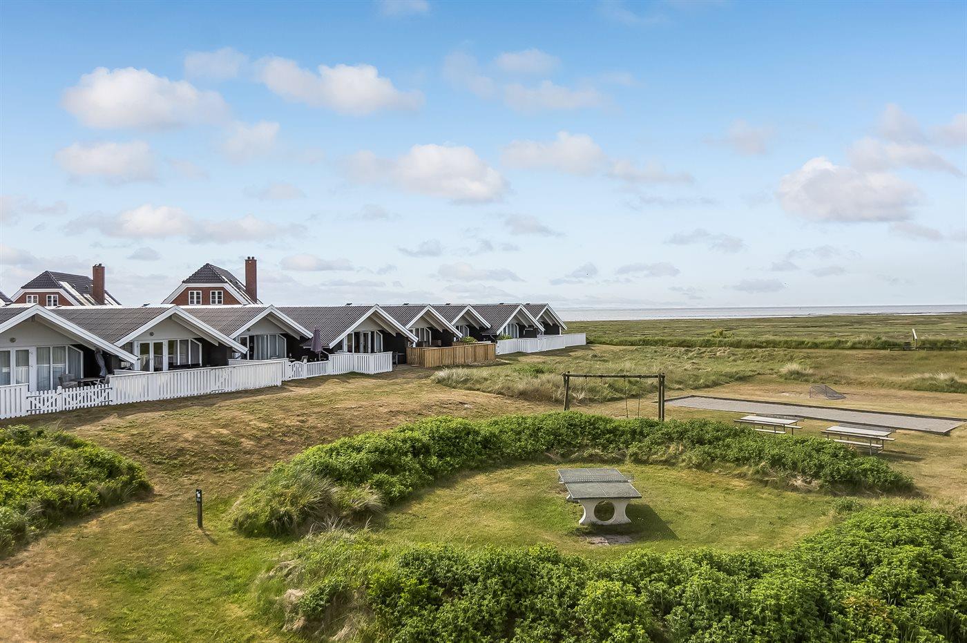 Ferieboligen er beliggende på en 6000 m2 stor fælles naturgrund. Der er 200 m til Vadehavet og 2000 m til nærmeste badestrand/Vesterhavet. Nærmeste dagligvareforretning ligger 150 m fra ferieboligen. Der er golfbane og wellnesscenter i en afstand af 400 m.