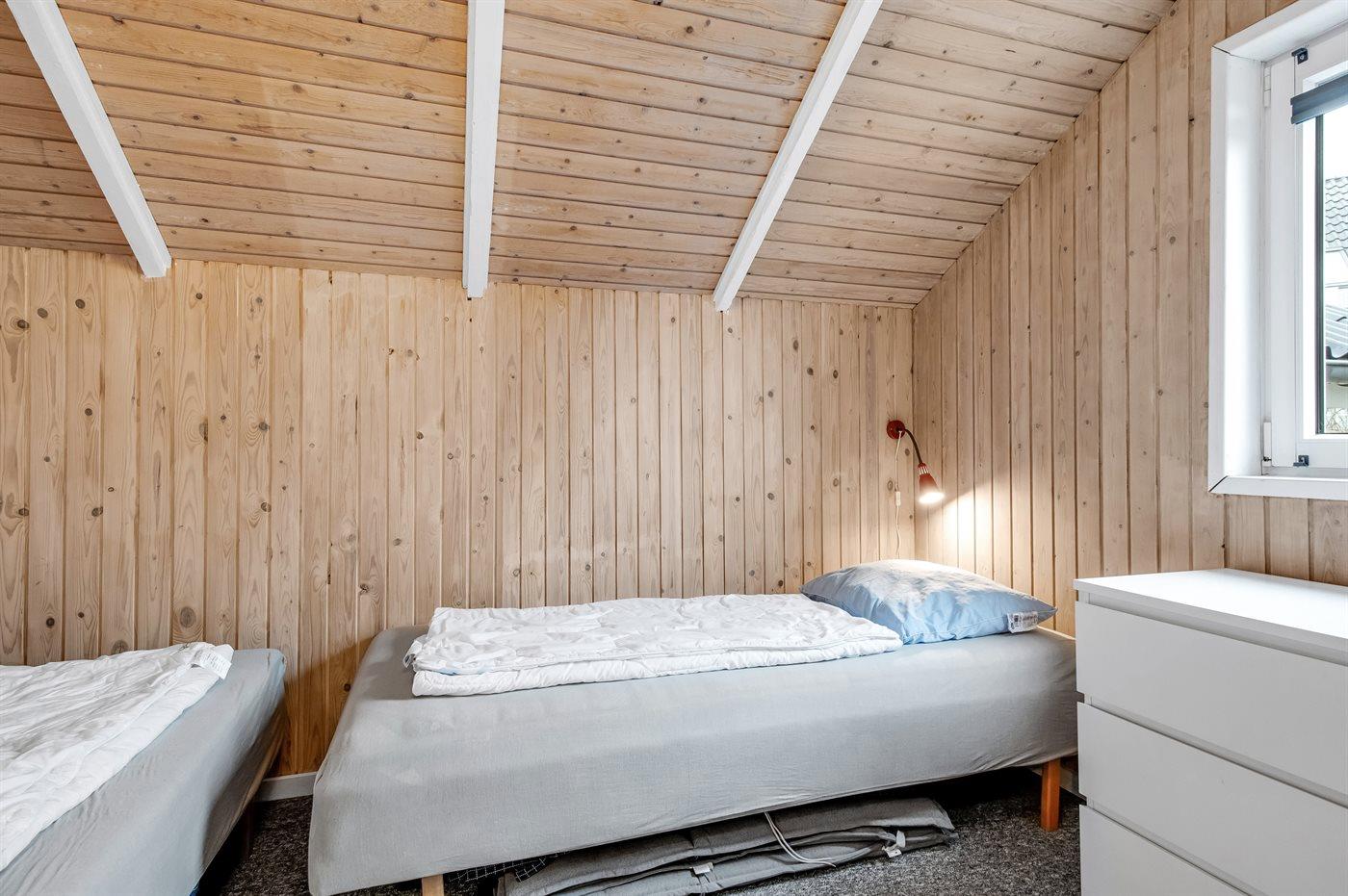 Der er i alt 3 soveværelser. Sovepladserne fordeler sig på: 4 sovepladser i dobbeltsenge. 2 sovepladser i enkeltsenge.