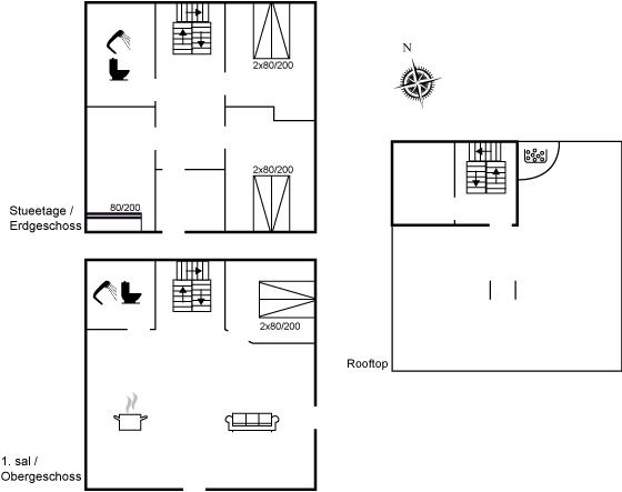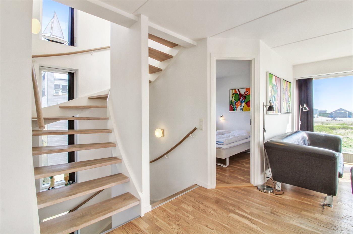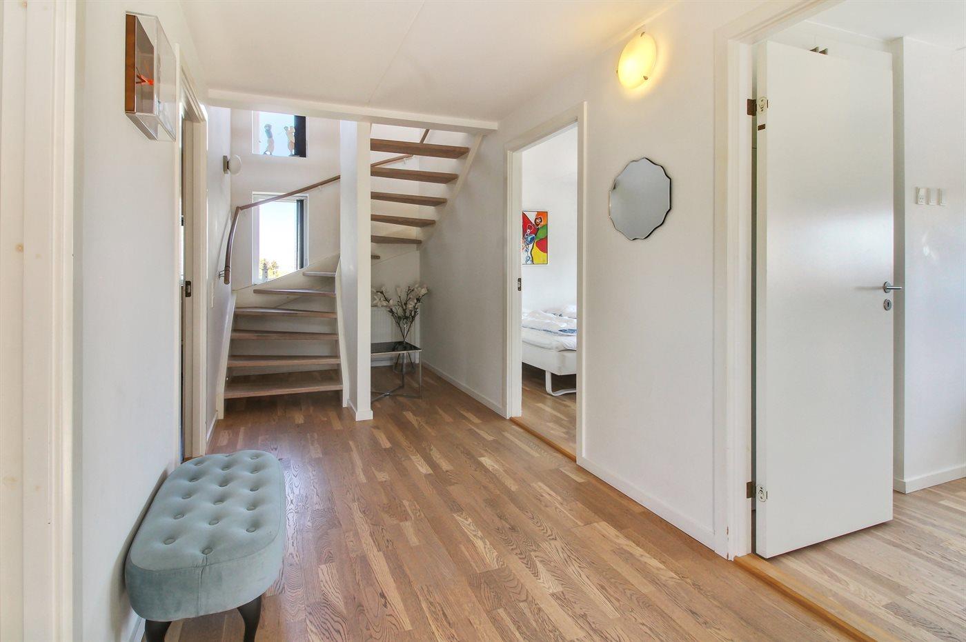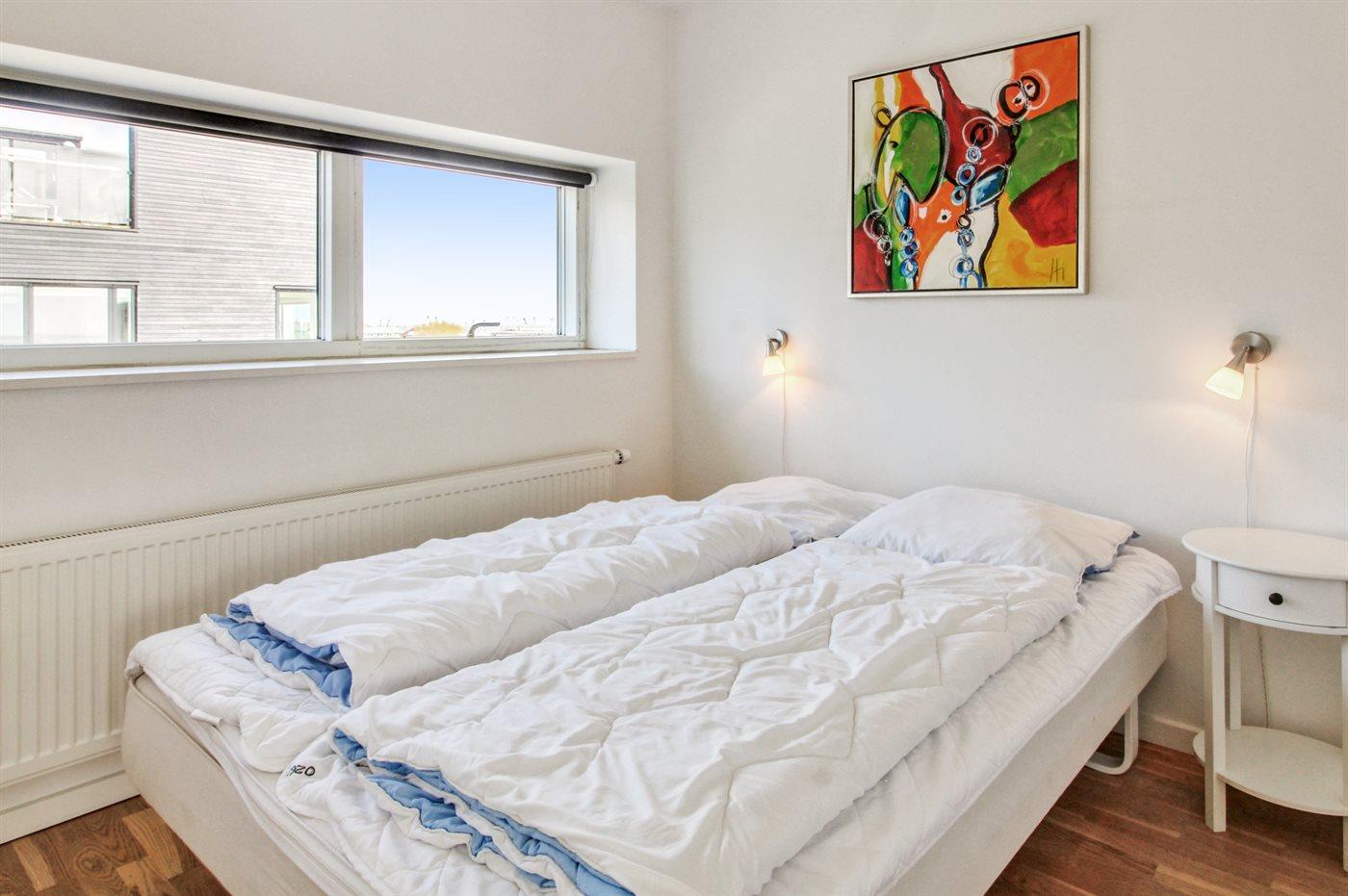 Der er i alt 4 soveværelser. Sovepladserne fordeler sig på: 6 sovepladser i dobbeltsenge. 2 sovepladser i køjeseng. Derudover er der 1 stk. barneseng.