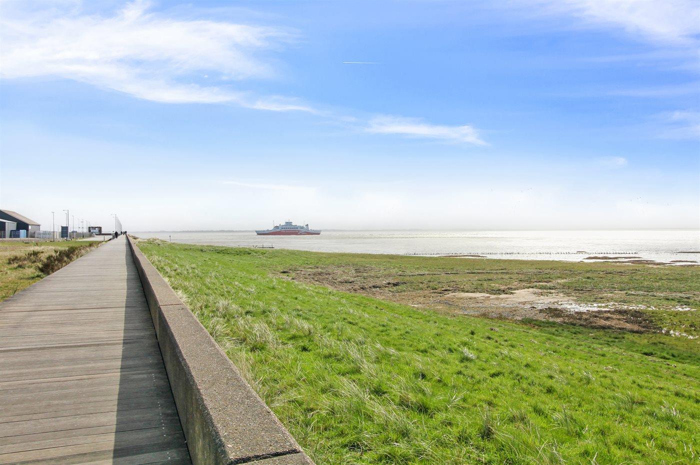 Ferieboligen er beliggende på en 150 m² stor naturgrund. Der er 2000 m til havet. Der er 25 m til Vadehavet. Nærmeste forretning er beliggende i en afstand af 200 m. Der er en golfbane i en afstand af 400 m. Grill til rådighed. Der er installeret stik til opladning af elbil. Type 2 stik. Med 11 kW ladeeffekt. Parkering ved ferieboligen.