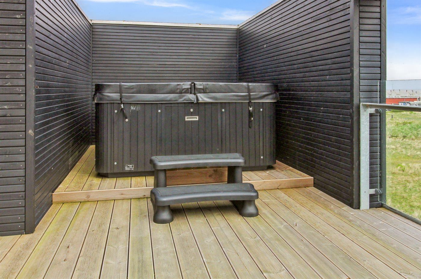 Der er mulighed for afslapning i udendørs standvandsspa til 5 personer.