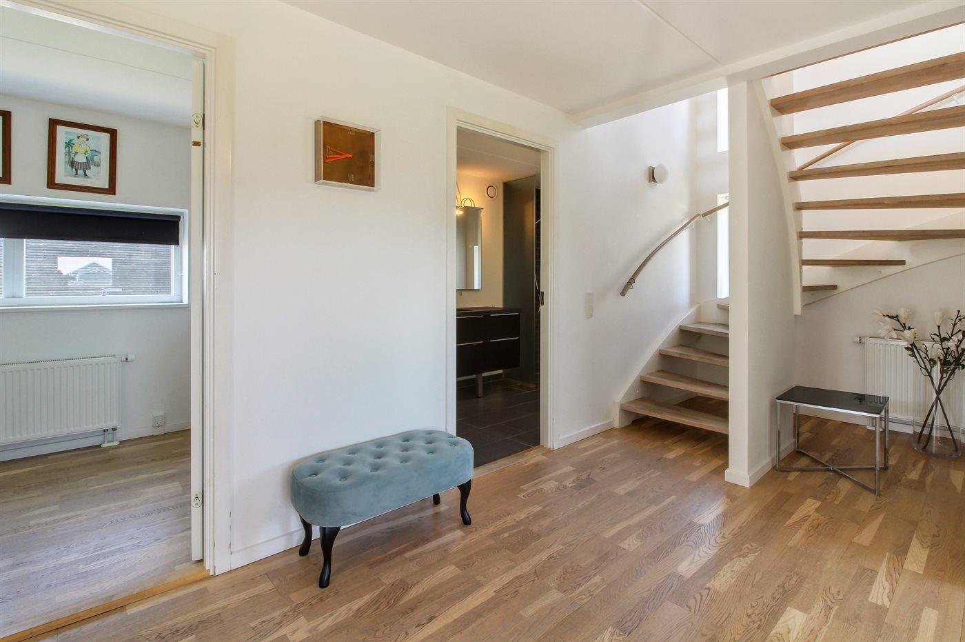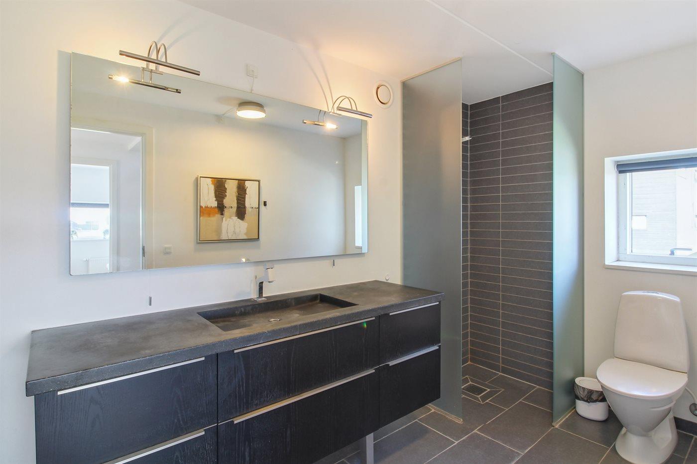 Der er 2 badeværelser med bruseniche og 2 toiletter. Der er gulvvarme på 2 badeværelser.