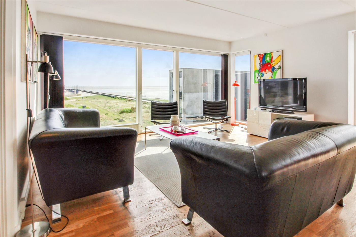 Skønt sommerhus med havudsigt, udendørs spa og tæt på Vadehavet og feriebyen Havneby.
