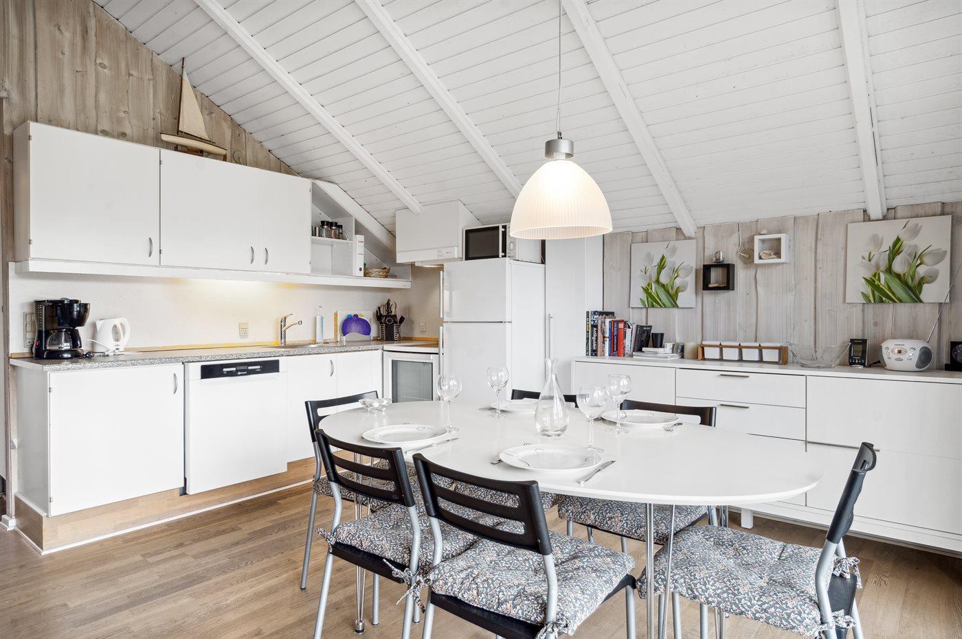 Køkkenet er udstyret med 1 køleskab. Der er 4 induktionskogeplader, varmluftovn, mikrobølgeovn samt opvaskemaskine.