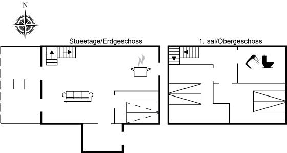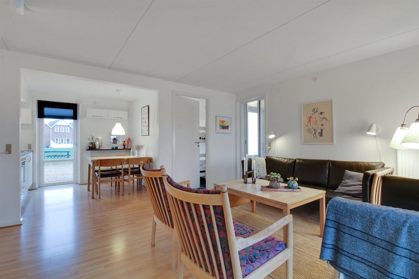 Ferieboligen, som er på 73 m2 fordelt på to plan, er bygget i 1987 og delvis renoveret i 2020. På 1. sal findes der en fordelings-gang, 2 soveværelser med dobbeltseng samt et badeværelse med bruseniche og vaskemaskine. Stueetagen er nyrenoveret og indrettet med en entré, et værelse med sovesofa, et dejligt nyt lyst køkken med nye hvidevarer (2020) som f.eks. glaskeramisk kogeplade, ovn, opvaskemaskine, køle-fryseskab med frysekapacitet på 15 liter, mikrobølgeovn m.m. Desuden findes der en stue, som er hyggeligt indrettet med 2 lædersofaer, 2 lænestole, spisebord med stole, en skænk og et SMART- TV.