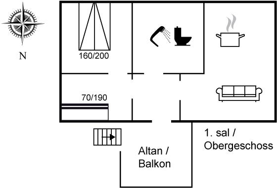 Der er i alt 1 soveværelse. Sovepladserne fordeler sig på: 2 sovepladser i dobbeltseng. 2 sovepladser i køjeseng. 2 af disse sovepladser befinder sig på i gangen.