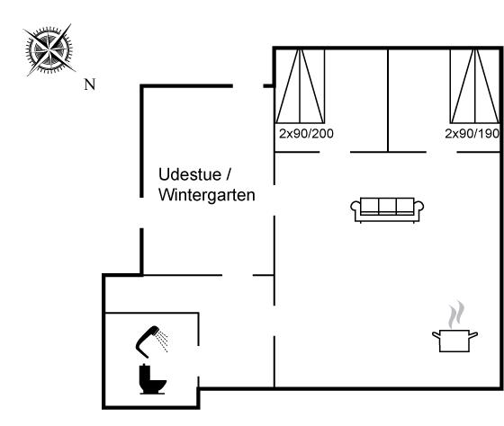 Der er i alt 2 soveværelser. Sovepladserne fordeler sig på: 4 sovepladser i dobbeltsenge.