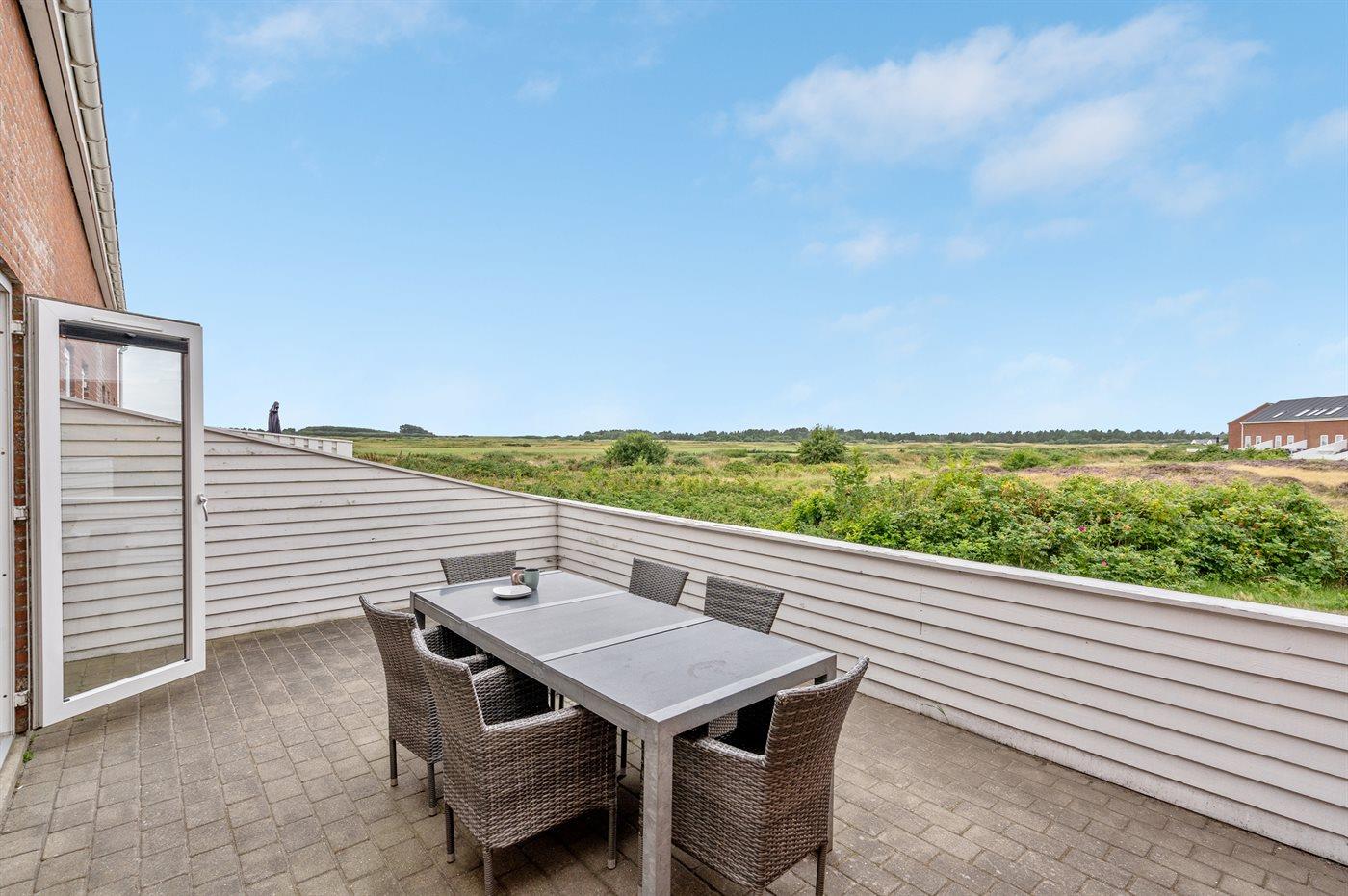 Ferieboligen er beliggende på en 200 m² stor klitgrund. Der er 500 m til havet. Nærmeste forretning er beliggende i en afstand af 1100 m. Der er en golfbane i en afstand af 25 m. Til ferieboligen hører 45 m² terrasseareal. Heraf i alt 45 m² lukket terrasse. Parkering ved ferieboligen.