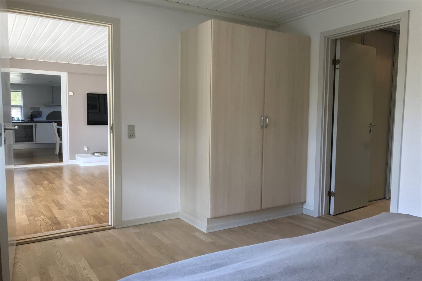 Der er i alt 3 soveværelser. Sovepladserne fordeler sig på: 6 sovepladser i dobbeltsenge. Derudover er der 2 stk. barnesenge.