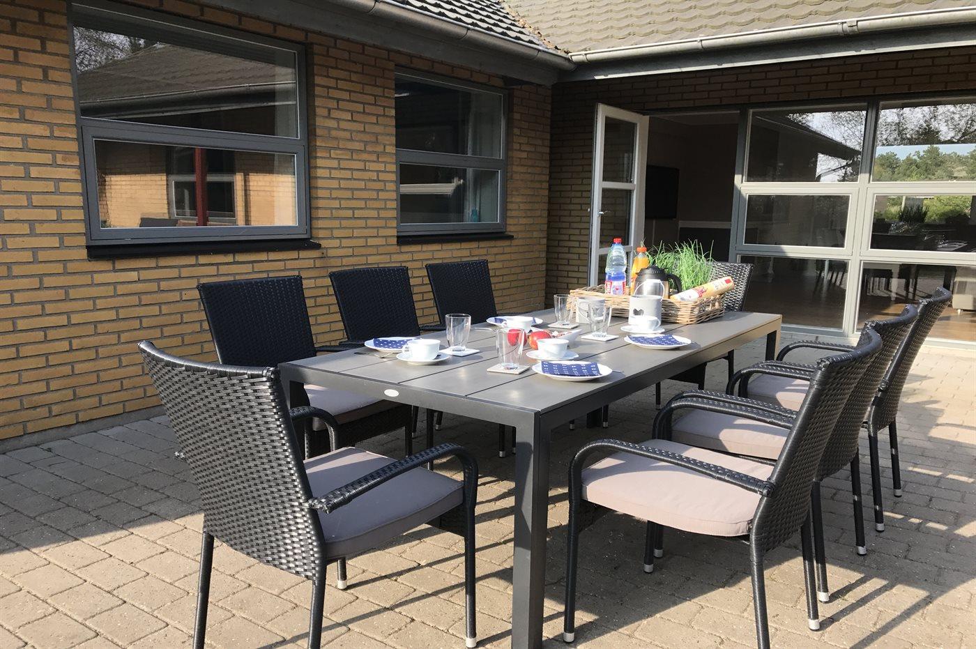 Ferieboligen er beliggende på en 795 m² stor havegrund. Der er 2500 m til havet. Der er 550 m til Vadehavet. Nærmeste forretning er beliggende i en afstand af 500 m. Der er en golfbane i en afstand af 1500 m. Til ferieboligen hører 40 m² terrasseareal. Parkering ved ferieboligen.