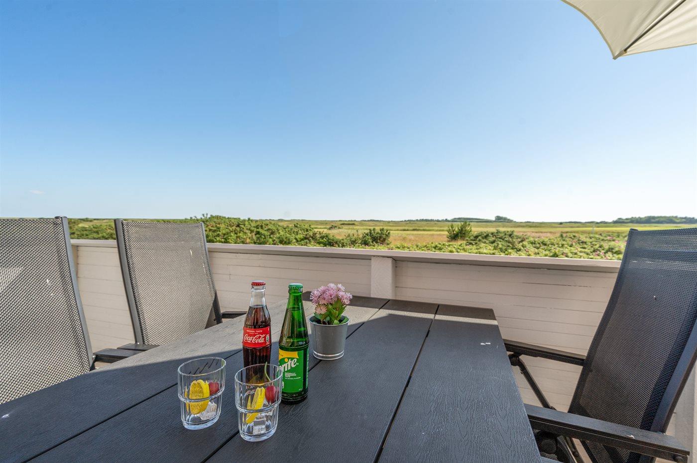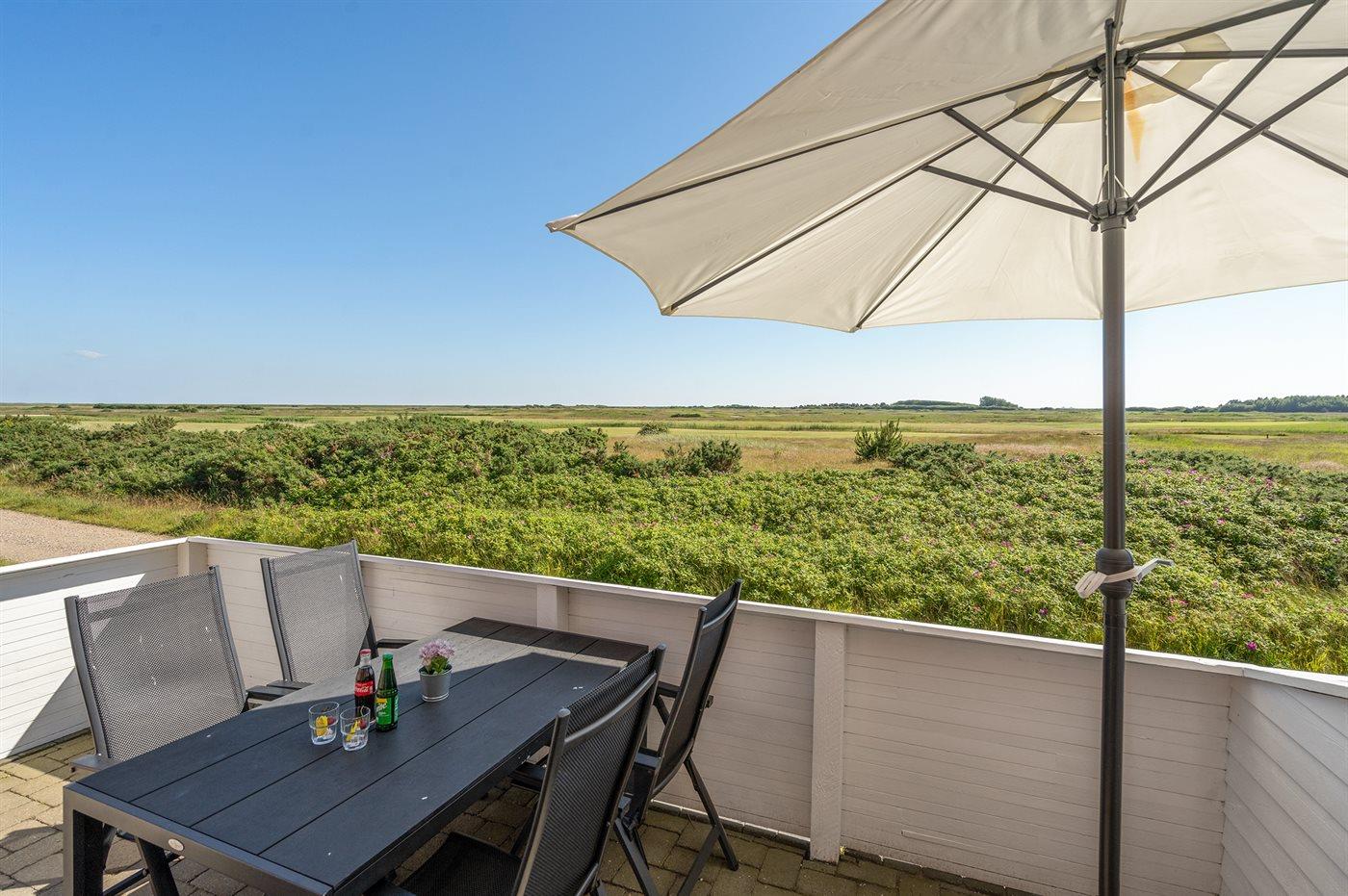Rækkehus i Rømø med udsigt til golfbane, to terrasser, fælles pool og tæt på natur og Vadehavet.