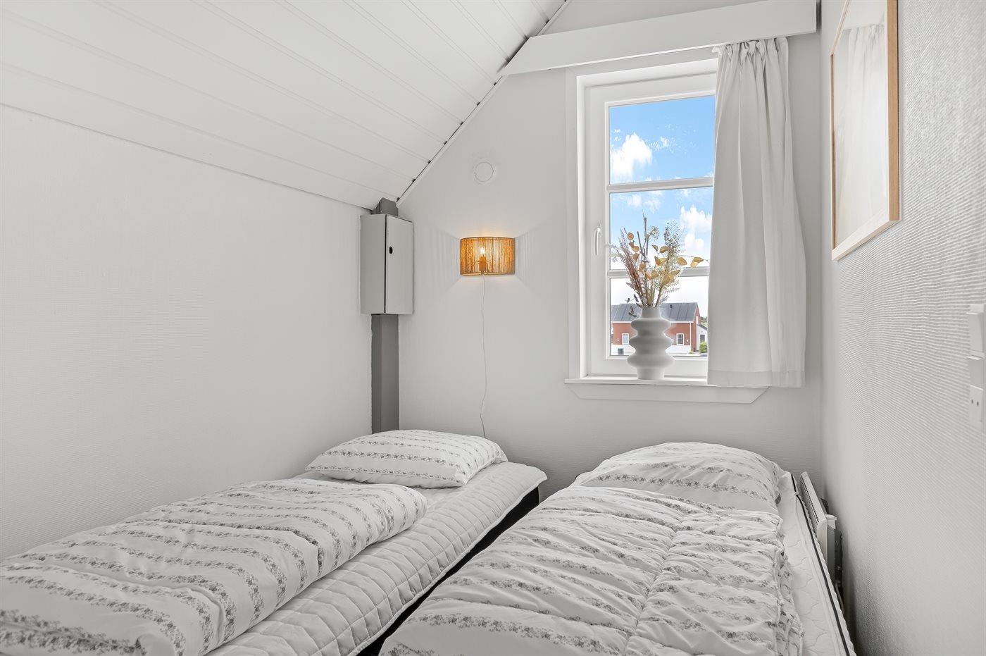 Der er i alt 2 soveværelser. Sovepladserne fordeler sig på: 2 sovepladser i dobbeltseng. 2 sovepladser i enkeltsenge.