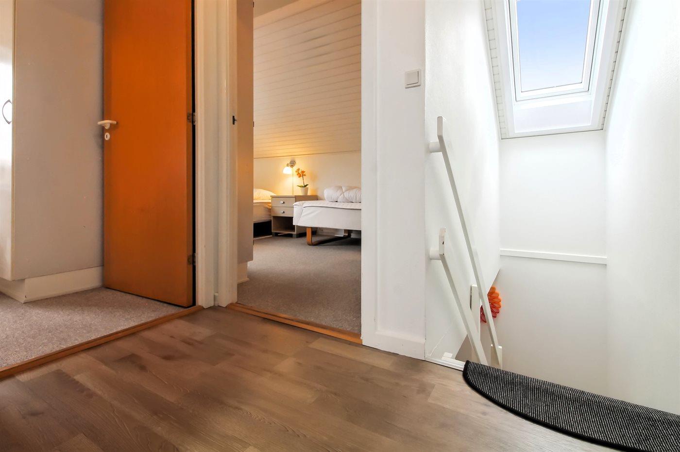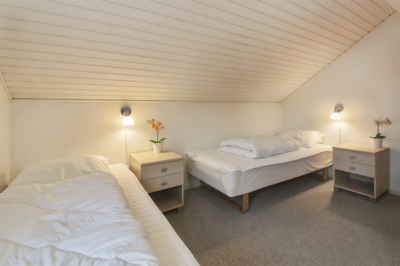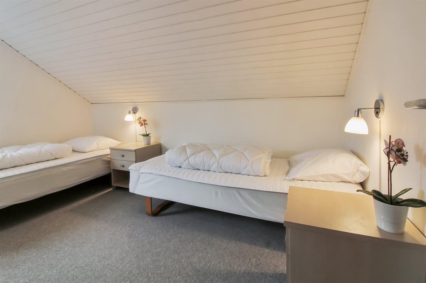 Der er i alt 3 soveværelser. Sovepladserne fordeler sig på: 2 sovepladser i dobbeltseng. 3 sovepladser i enkeltsenge.