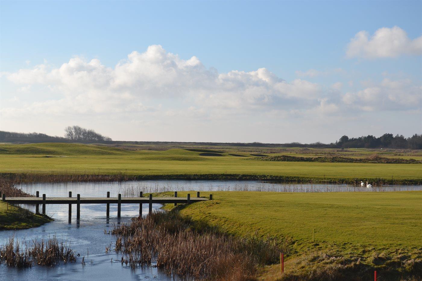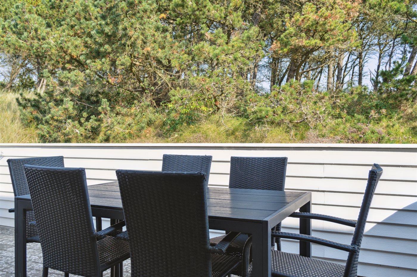 Ferieboligen er beliggende på en 200 m² stor naturgrund. Der er 2300 m til havet. Der er 600 m til Vadehavet. Nærmeste forretning er beliggende i en afstand af 1100 m. Der er en golfbane i en afstand af 75 m. Til ferieboligen hører 56 m² terrasseareal. Heraf i alt 56 m² lukket terrasse. Parkering ved ferieboligen.