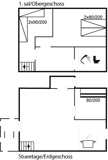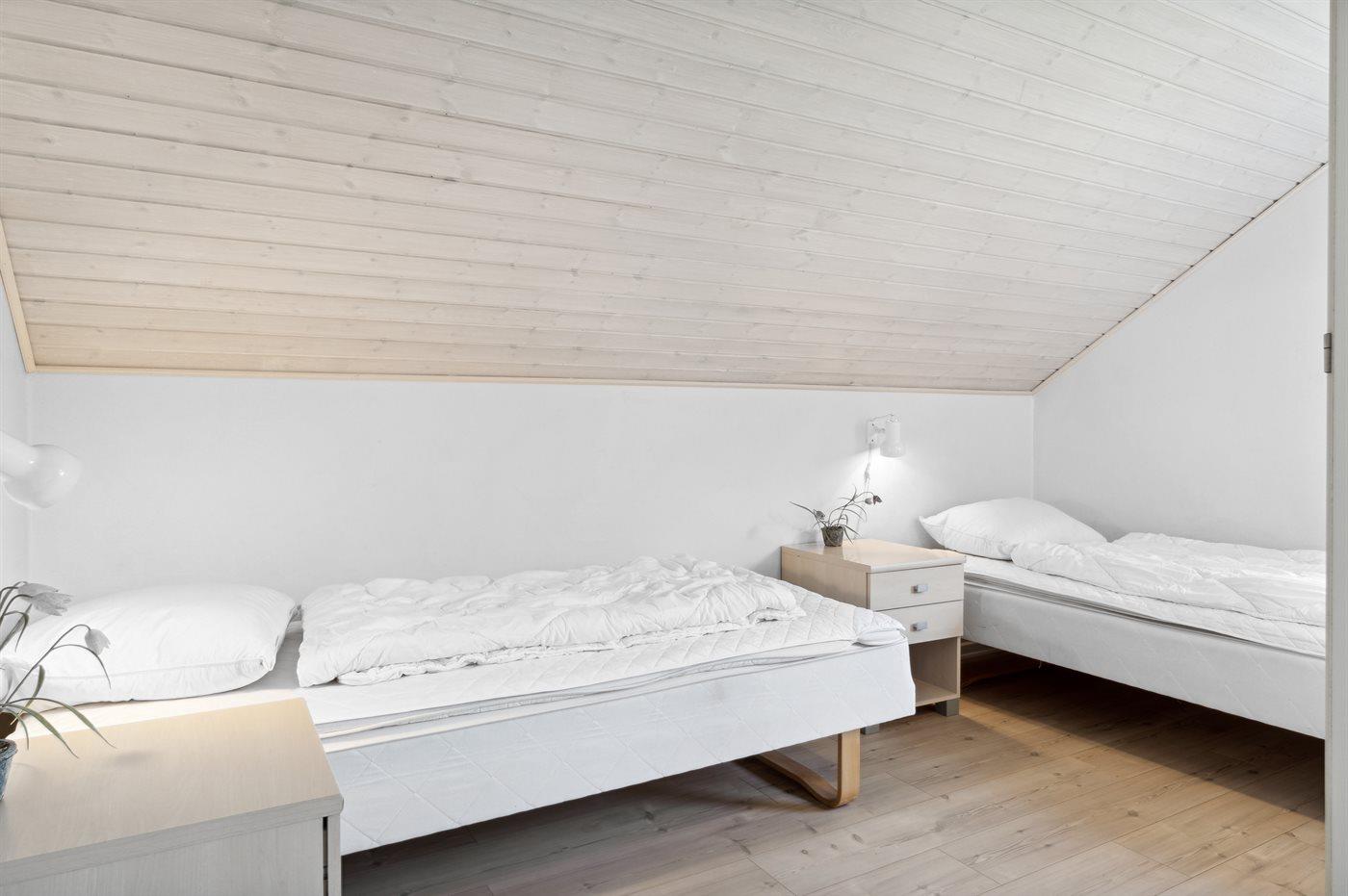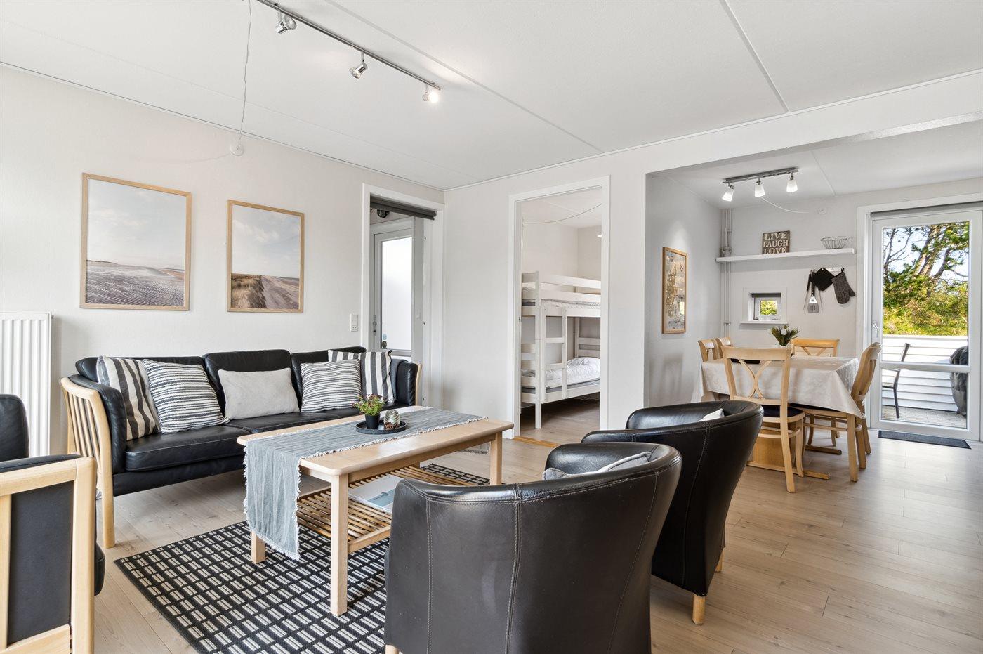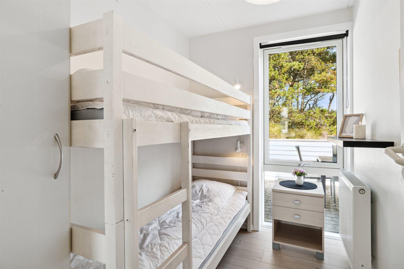 Der er i alt 3 soveværelser. Sovepladserne fordeler sig på: 2 sovepladser i dobbeltseng. 2 sovepladser i enkeltsenge. 2 sovepladser i køjeseng. Derudover er der 1 stk. barneseng.