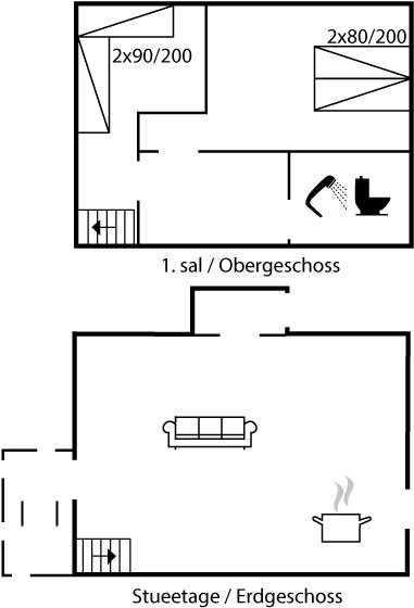 Der er i alt 2 soveværelser. Sovepladserne fordeler sig på: 2 sovepladser i dobbeltseng. 2 sovepladser i enkeltsenge. Derudover er der 1 stk. barneseng.