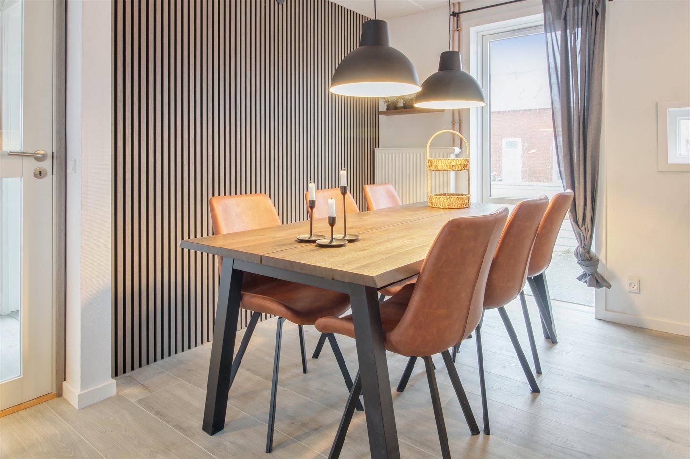 Køkkenet er udstyret med 1 køleskab. Der er 4 elkogeplader, bageovn, mikrobølgeovn samt opvaskemaskine.