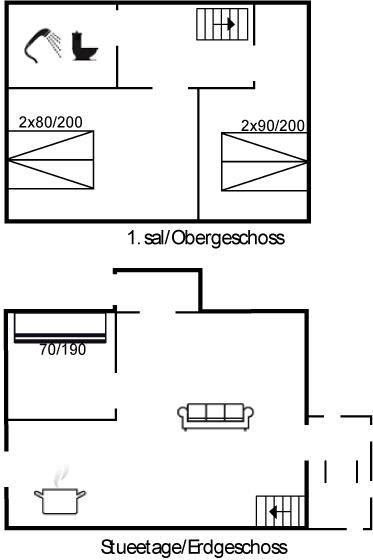 Der er i alt 3 soveværelser. Sovepladserne fordeler sig på: 4 sovepladser i dobbeltsenge. 2 sovepladser i køjeseng. Derudover er der 1 stk. barneseng.