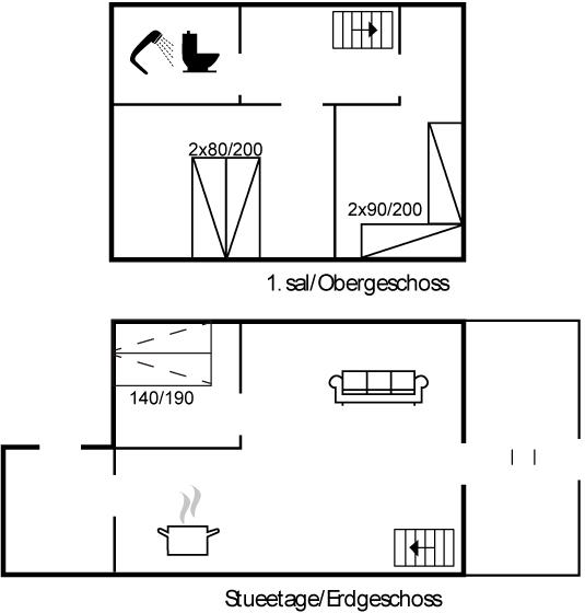 Der er i alt 3 soveværelser. Sovepladserne fordeler sig på: 2 sovepladser i dobbeltseng. 2 sovepladser i enkeltsenge. 2 sovepladser i sovesofa (dobbelt). Derudover er der 1 stk. barneseng.