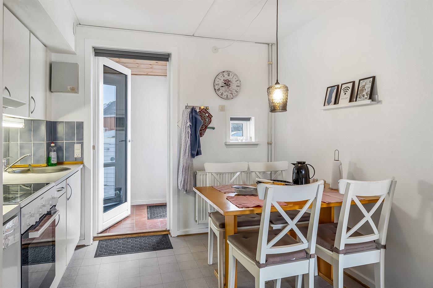 Køkkenet er udstyret med 1 køleskab. Der er 4 elkogeplader, bageovn samt opvaskemaskine.