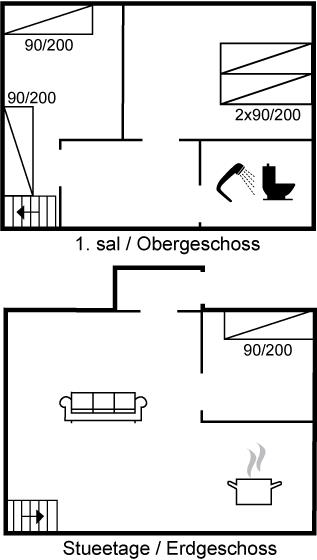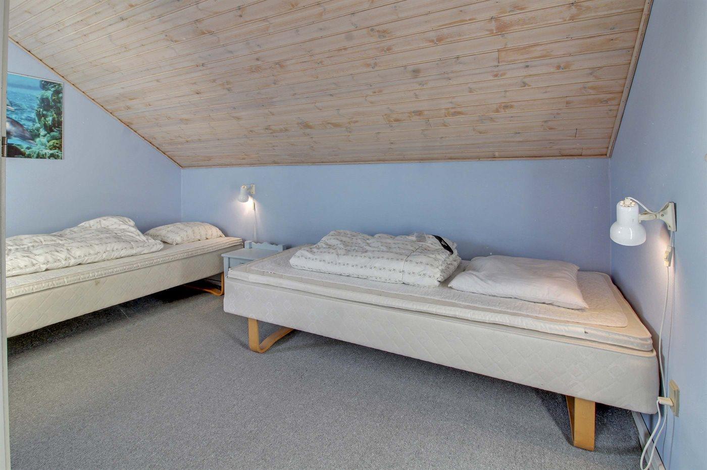 Der er i alt 3 soveværelser. Sovepladserne fordeler sig på: 2 sovepladser i dobbeltseng. 3 sovepladser i enkeltsenge. Derudover er der 1 stk. barneseng.